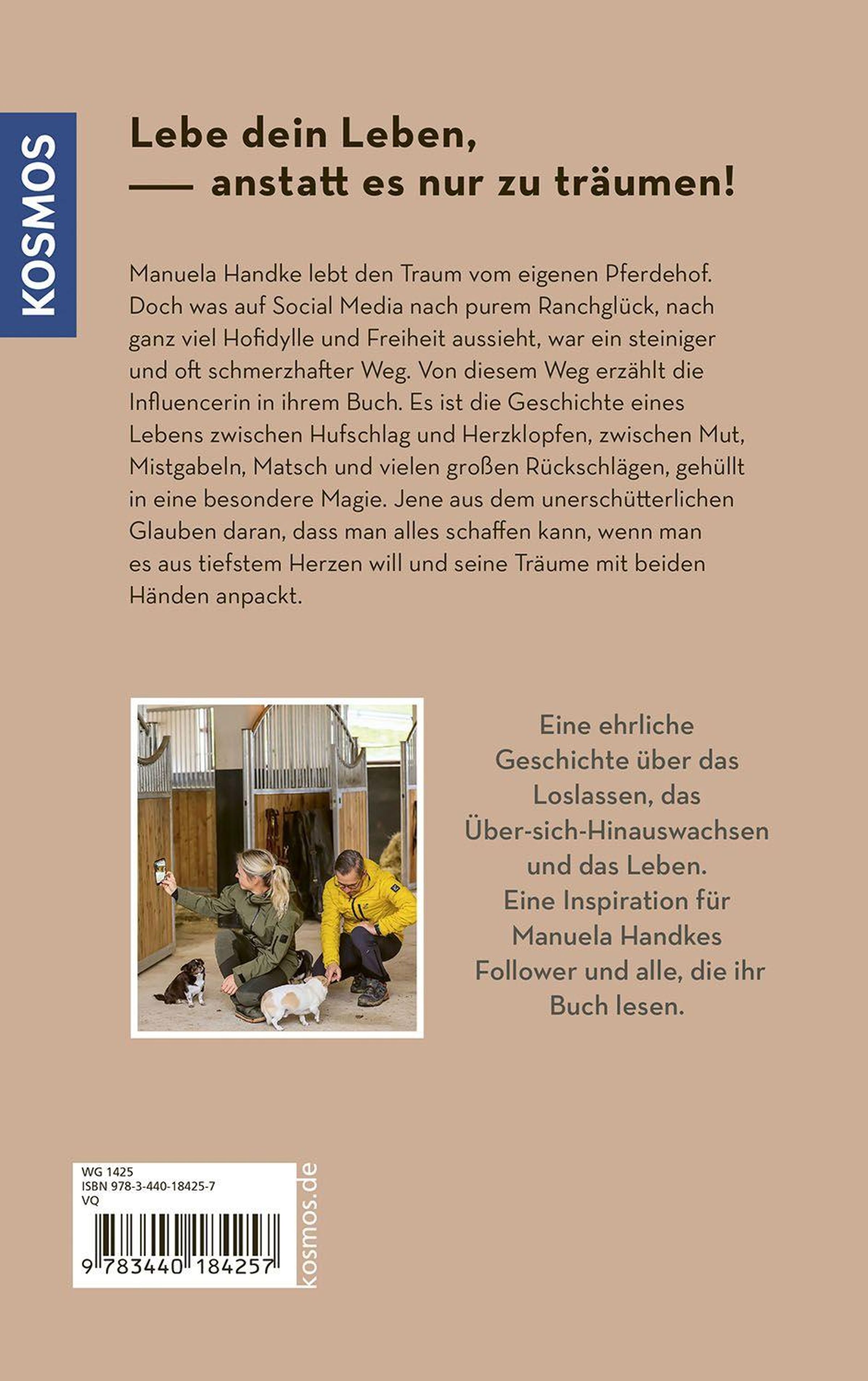 Manuela Handke hat geschafft, wovon viele nur träumen - sie lebt den Traum vom eigenen Pferdehof. Doch was auf Social Media nach purem Ranchglück, ganz viel Hofidylle und Freiheit aussieht, war ein steiniger, schmerzhafter Weg. Was wirklich dahinter steckt, erzählt die Influencerin in ihrem Buch. Es ist die Geschichte eines Lebens zwischen Hufschlag und Herzklopfen, zwischen Mut, Mistgabeln, Matsch und vielen großen Rückschlägen gehüllt in eine besondere Magie. Jene aus dem unerschütterlichen Glauben daran, dass man alles schaffen kann, wenn man es aus tiefstem Herzen will und seine Träume mit beiden Händen anpackt. Eine ehrliche Geschichte über das Loslassen, das über sich hinaus Wachsen und das Leben. Eine Inspiration für ihre Follower und alle, die ihr Buch lesen.