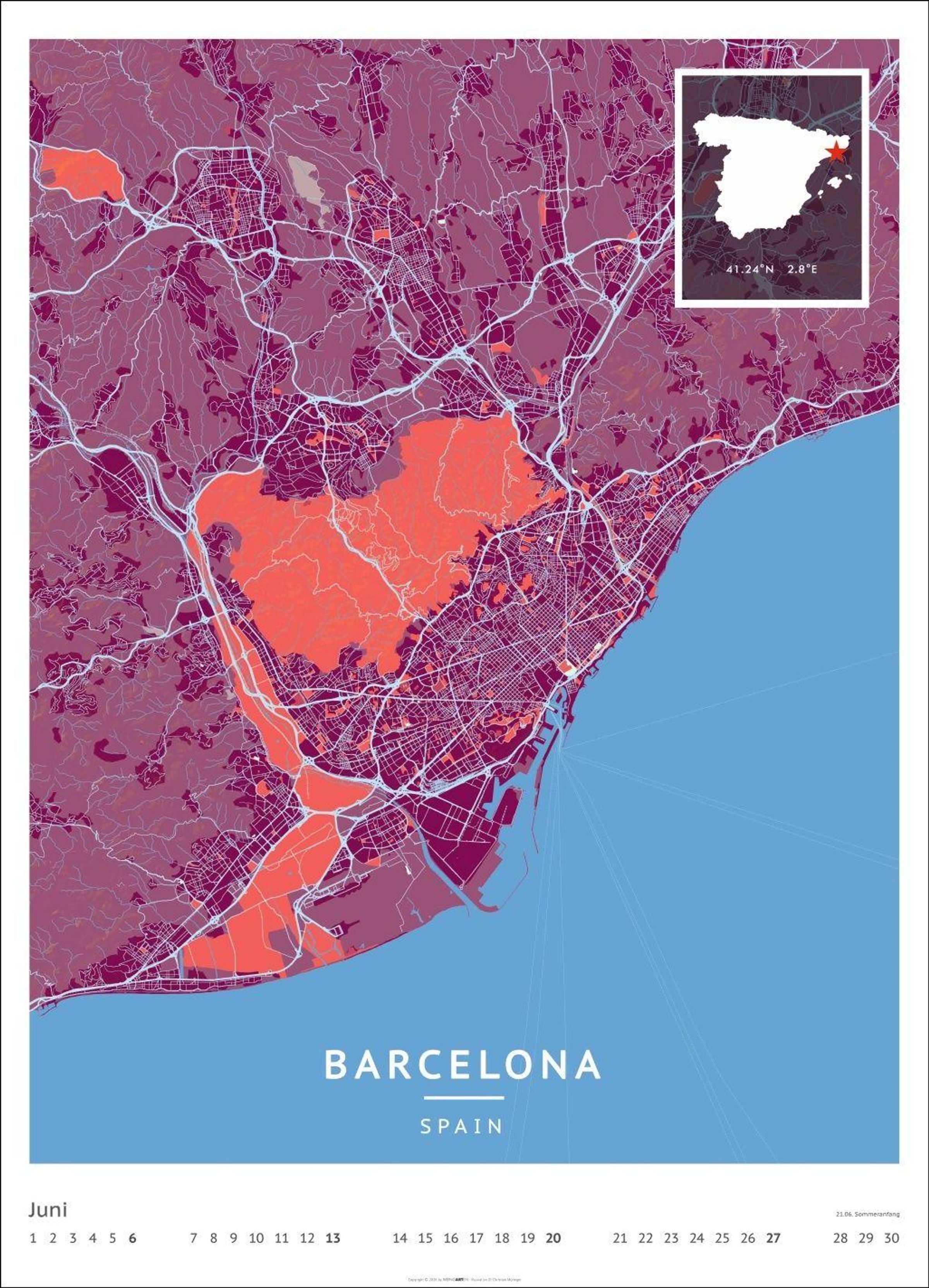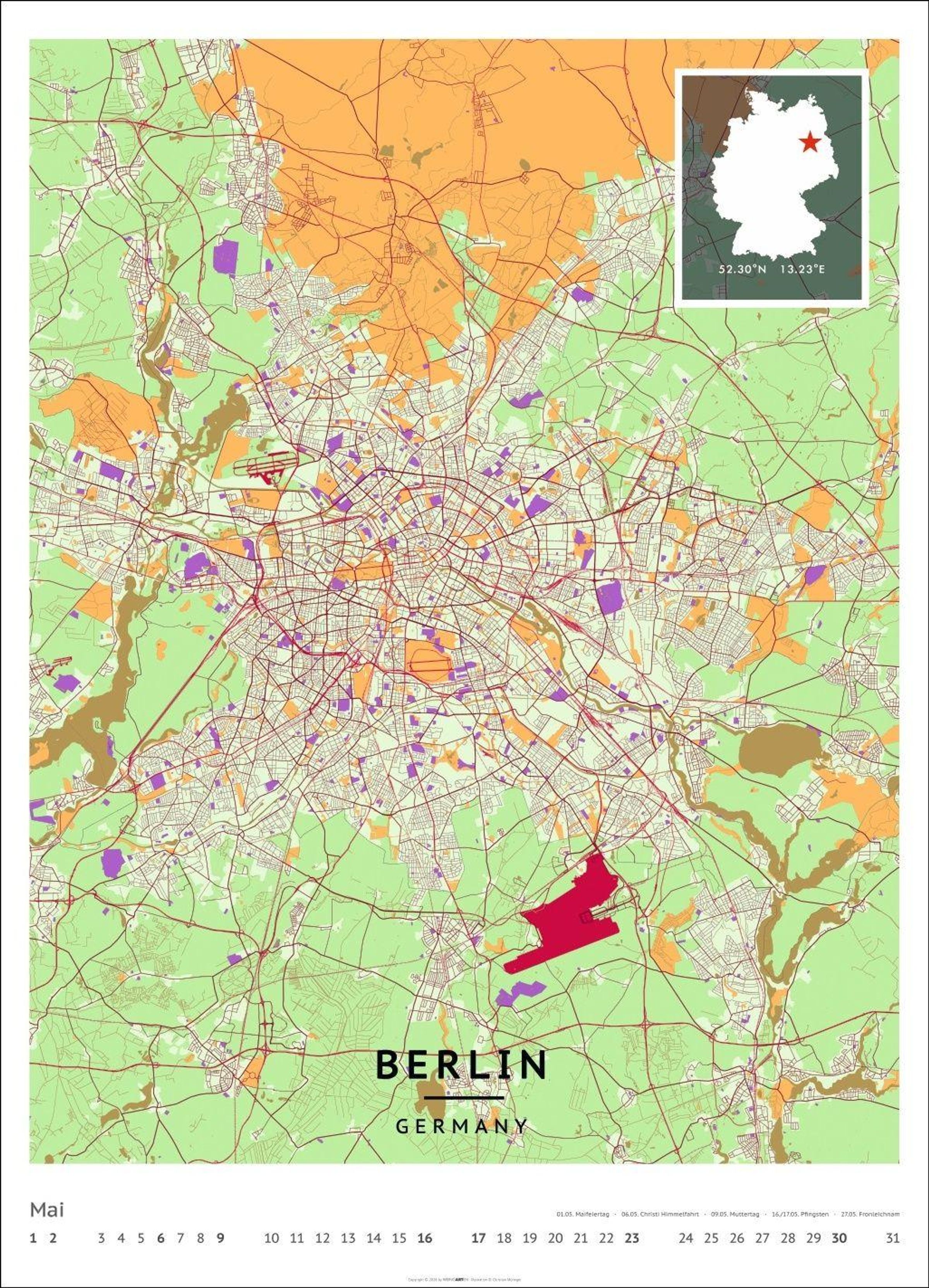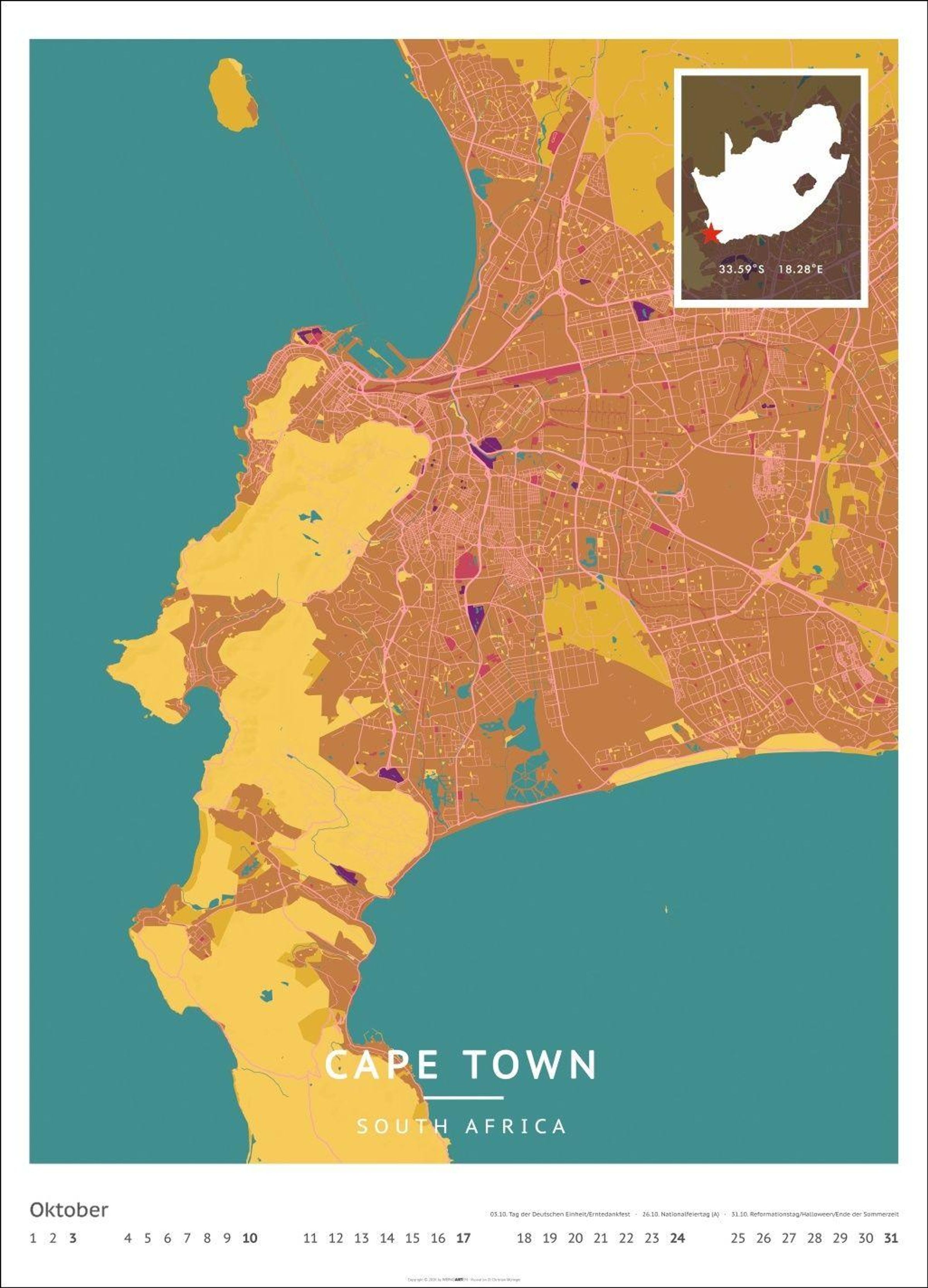 Für alle Liebhaber von moderner Kartenkunst und ausgefallenen Interior-Ideen: Großer Wandkalender mit Farbkontrasten als Eye-Catcher