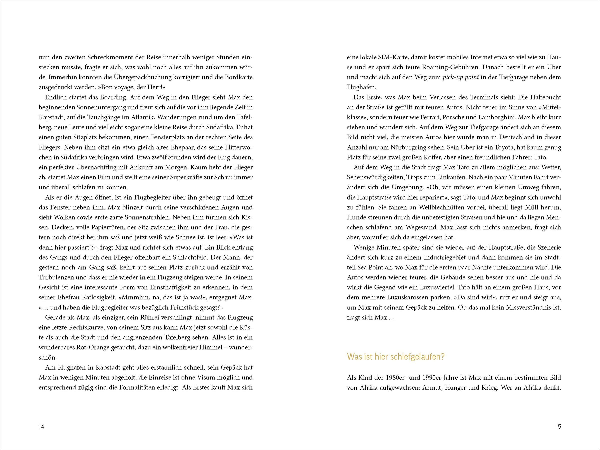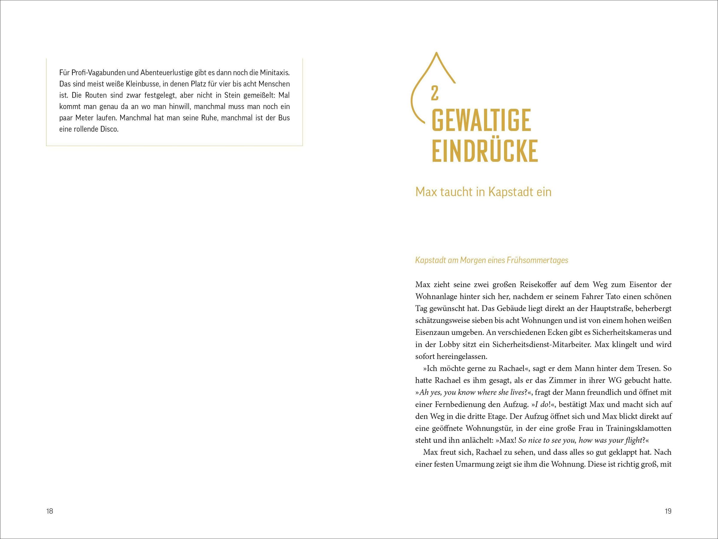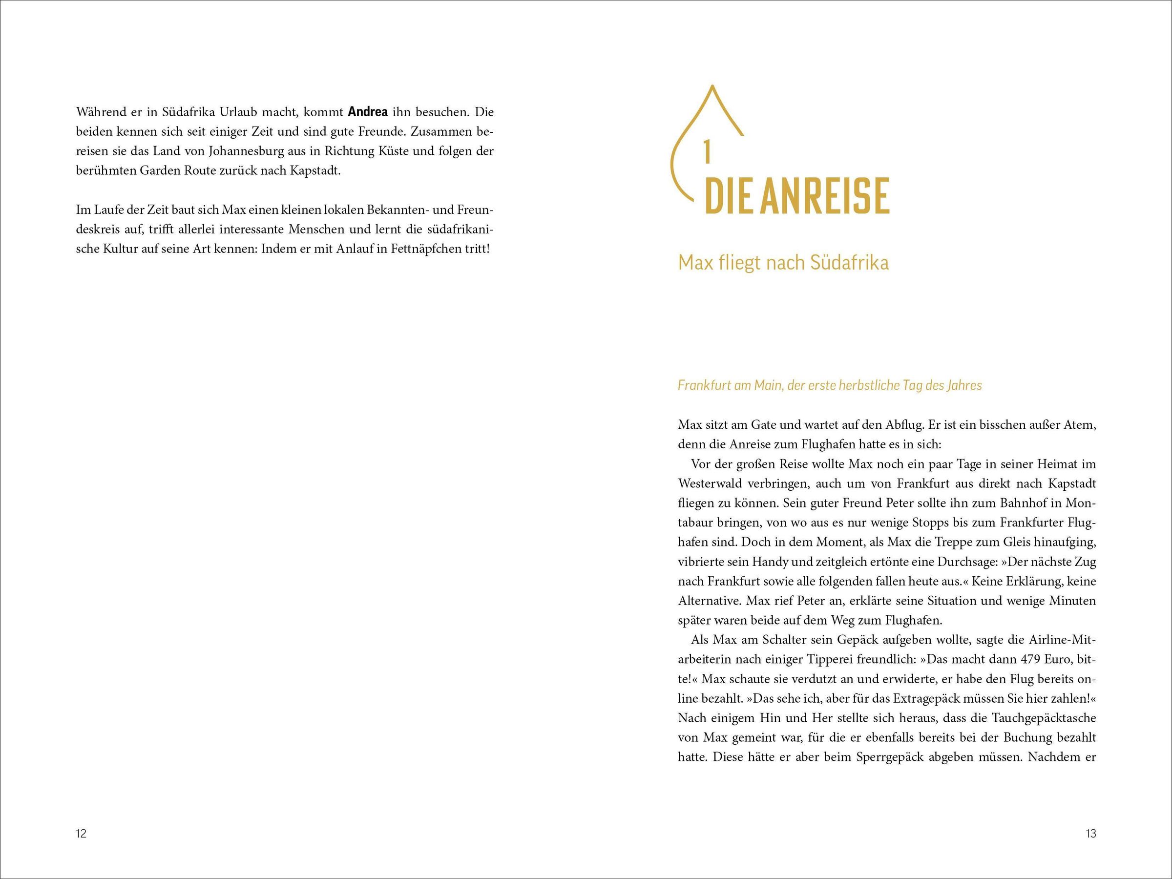 In Südafrika erwarten einen viele Überraschungen und Missverständnisse. Von der Frage nach der Sprache bis zu unerklärlichen Blicken der Polizisten - jedes Fettnäpfchen birgt eine neue Entdeckung. Der abenteuerliche Trip führt durch Kapstadt, die Karoo und Johannesburg und lässt einen die vielfältigen Kulturen und Eigenheiten des Landes auf humorvolle Weise erleben.