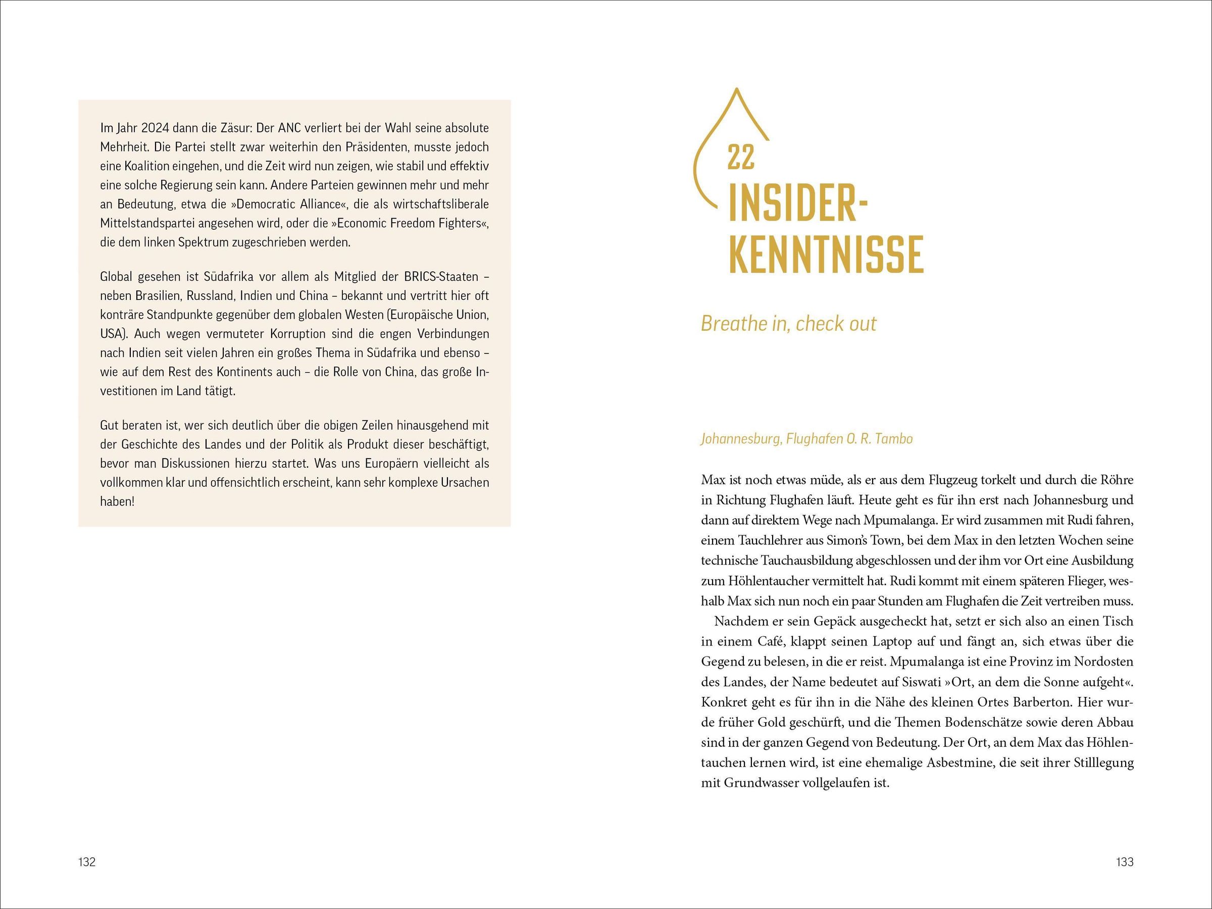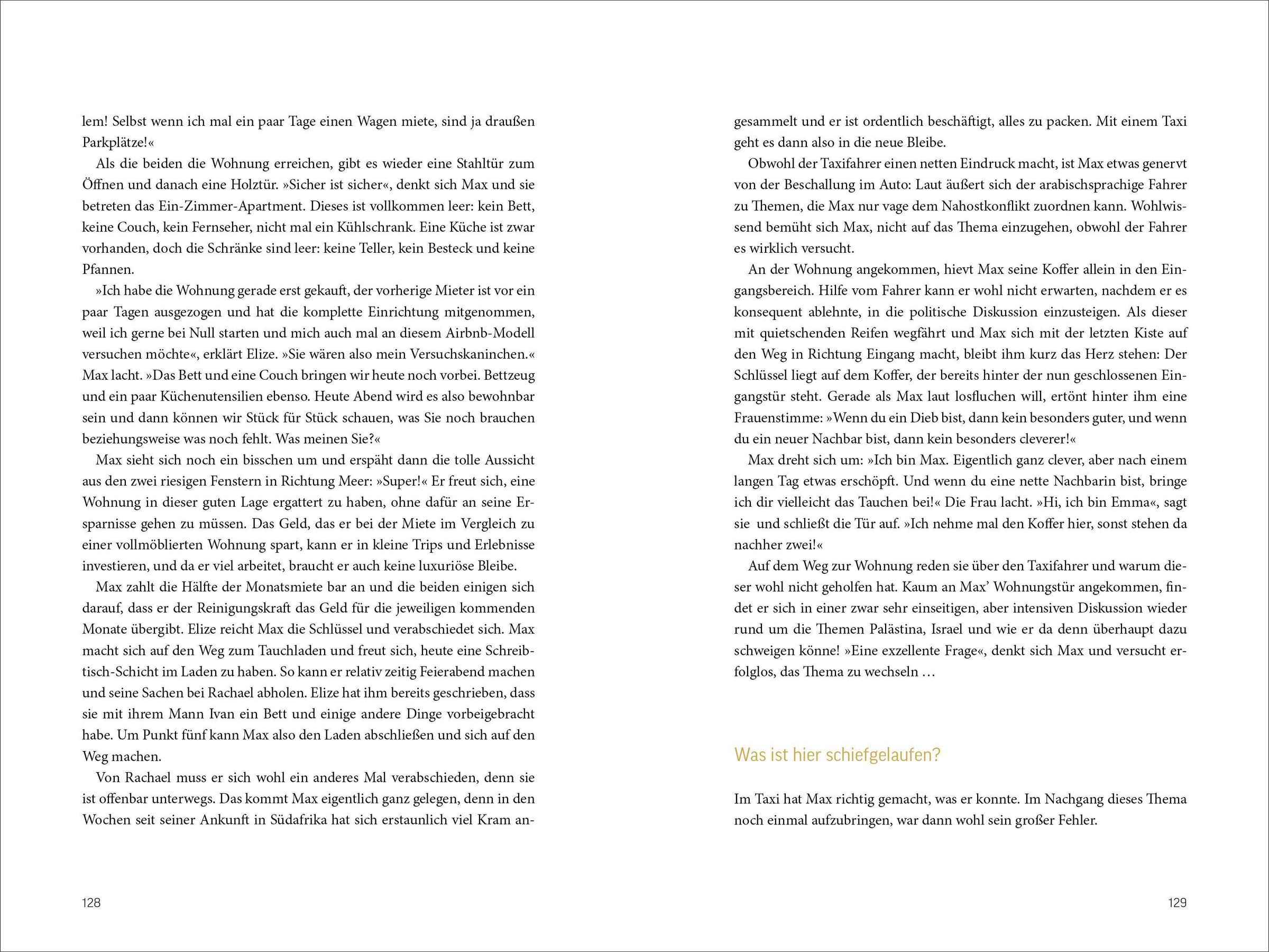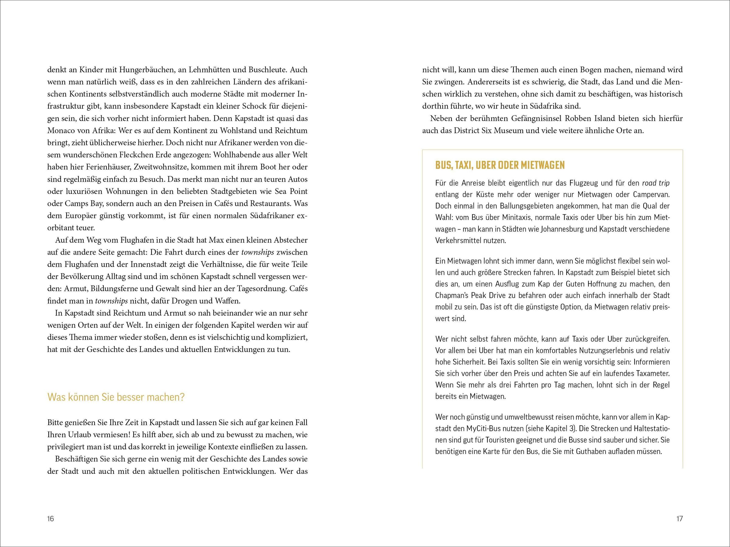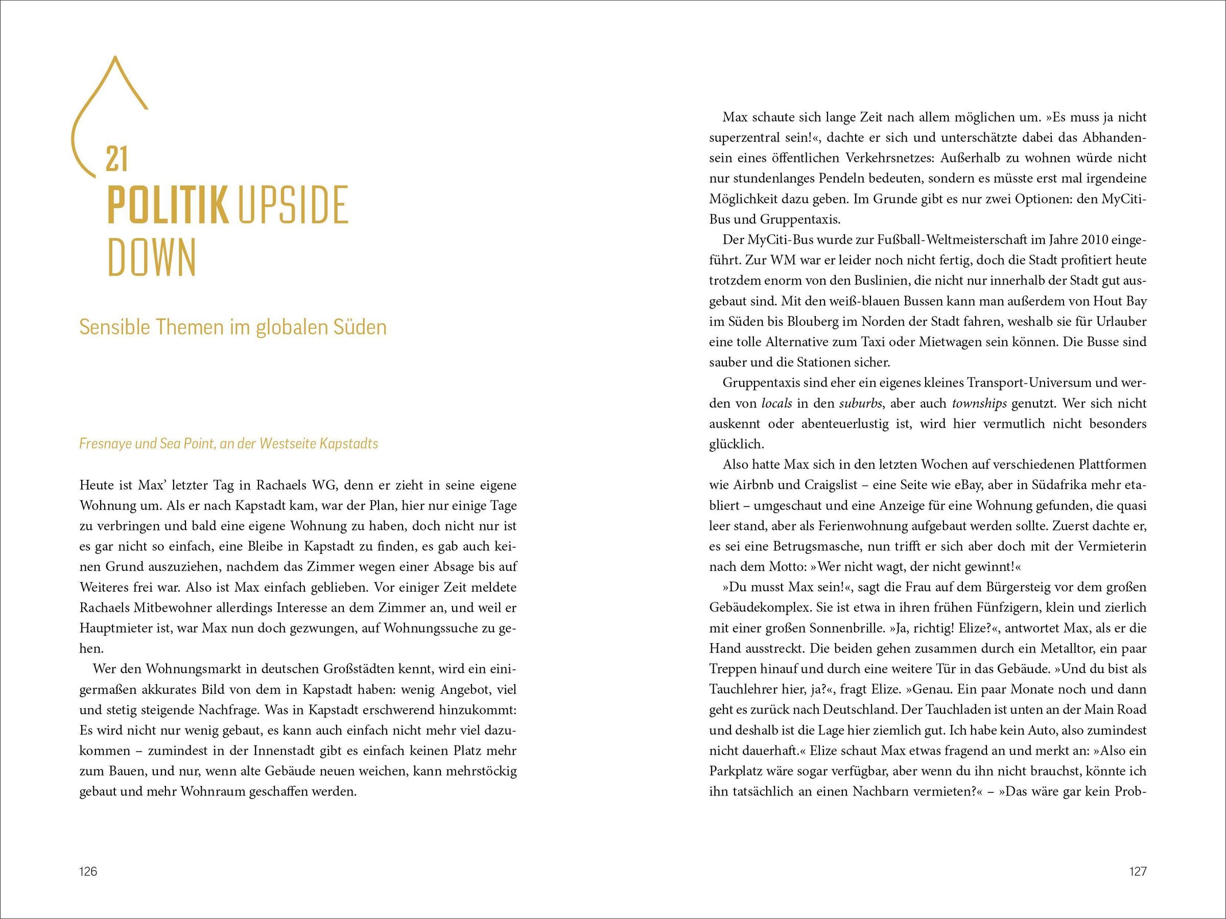 In Südafrika erwarten einen viele Überraschungen und Missverständnisse. Von der Frage nach der Sprache bis zu unerklärlichen Blicken der Polizisten - jedes Fettnäpfchen birgt eine neue Entdeckung. Der abenteuerliche Trip führt durch Kapstadt, die Karoo und Johannesburg und lässt einen die vielfältigen Kulturen und Eigenheiten des Landes auf humorvolle Weise erleben.