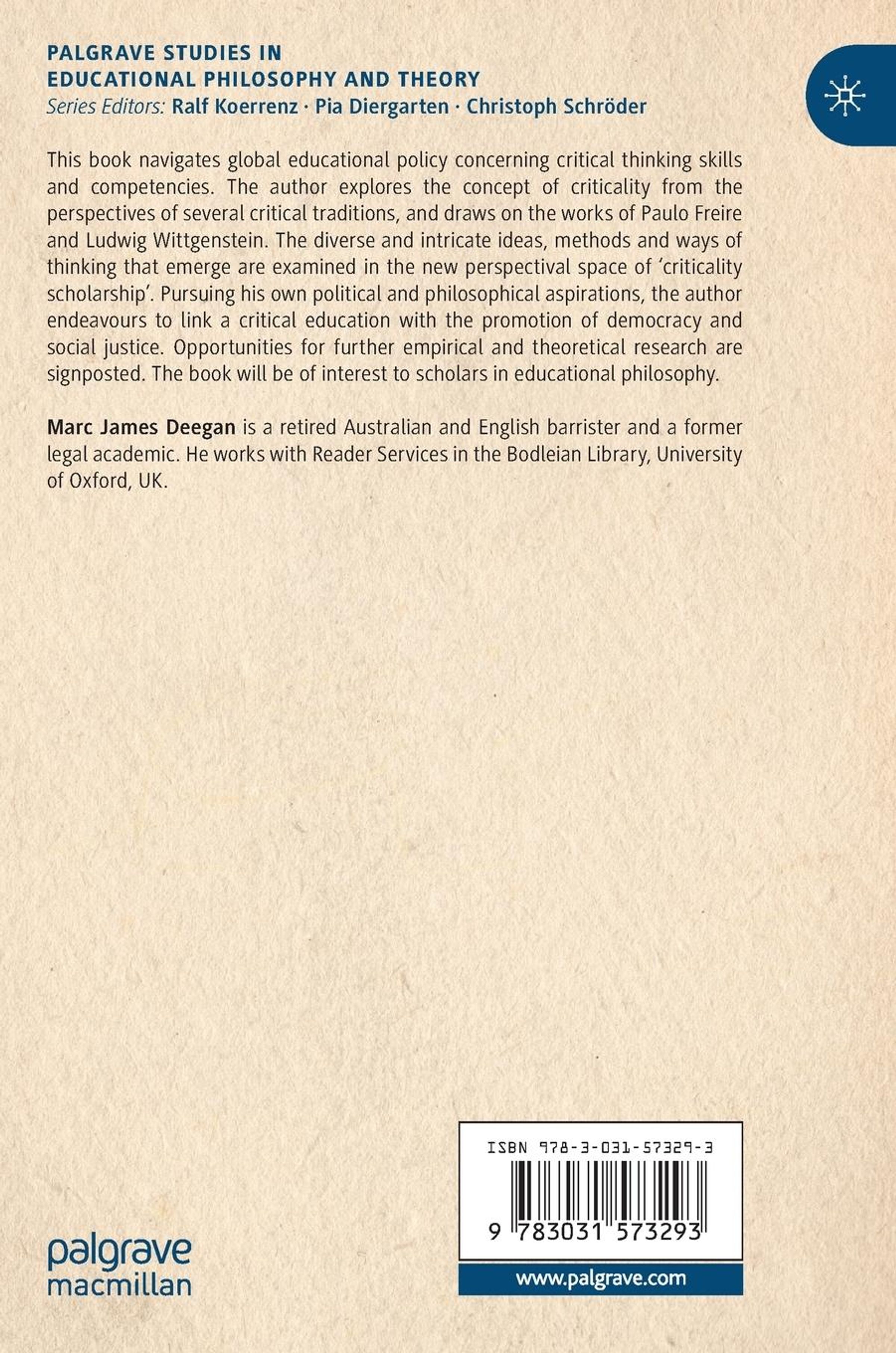 This book navigates global educational policy concerning critical thinking skills and competencies. The author explores the concept of criticality from the perspectives of several critical traditions, and draws on the works of Paulo Freire and Ludwig Wittgenstein. The diverse and intricate ideas, methods and ways of thinking that emerge are examined in the new perspectival space of ¿criticality scholarship¿. Pursuing his own political and philosophical aspirations, the author endeavours to link a critical education with the promotion of democracy and social justice. Opportunities for further empirical and theoretical research are signposted. The book will be of interest to scholars in educational philosophy.