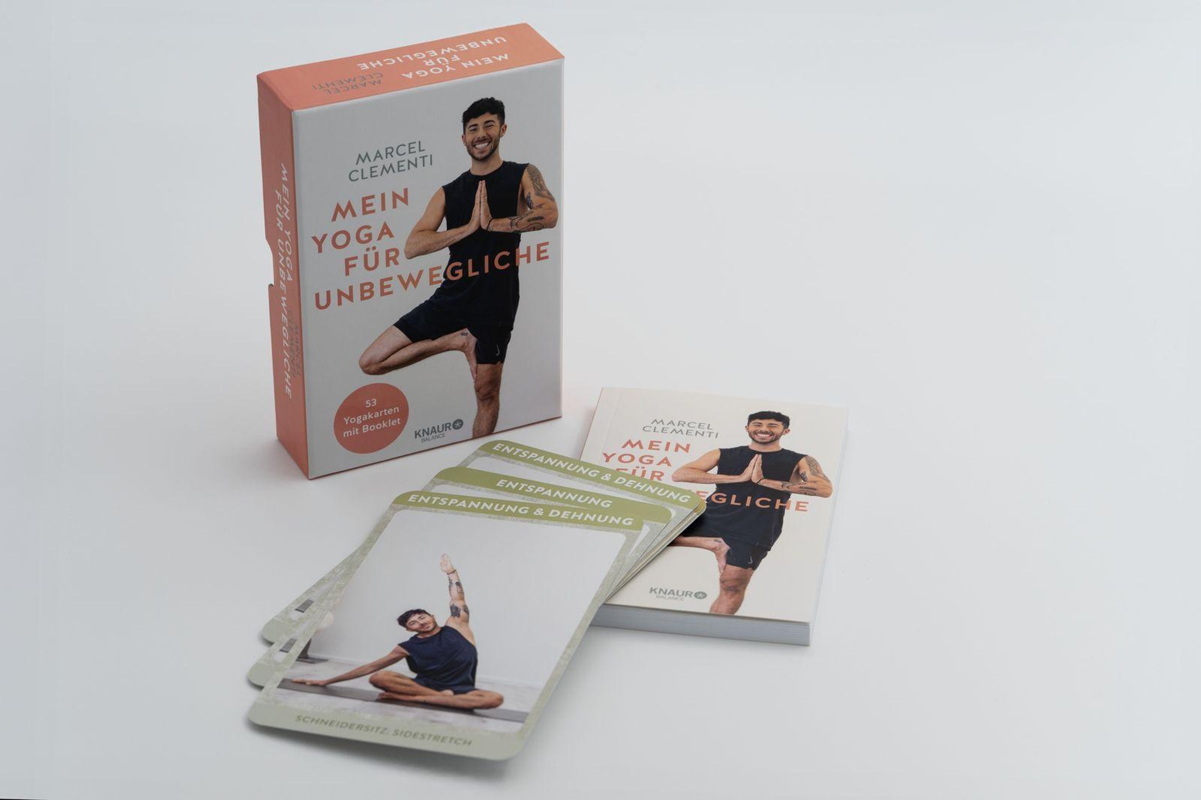 Unbeweglichkeit überwinden - die Kartenbox des beliebten Yogalehrers 'Komplett steif und unbeweglich? Kein Problem!', sagt Yogalehrer und Speaker Marcel Clementi. Seine einfachen Yoga-Übungen hilft, Verletzungen zu vermeiden, Schmerzen zu reduzieren und die Körperhaltung zu verbessern. Die praktische Kartenbox richtet sich gezielt an Yoga-Anfänger*innen und Menschen mit weniger Beweglichkeit. Mit vielen Fotos und Schritt-für-Schritt-Anleitungen erklären die Karten, wie man alle Asanas korrekt und sicher ausführt. Zusätzlich gibt das beiliegende Booklet weitere Informationen und wertvolle Tipps rund um dein individuelles Yoga-Training.