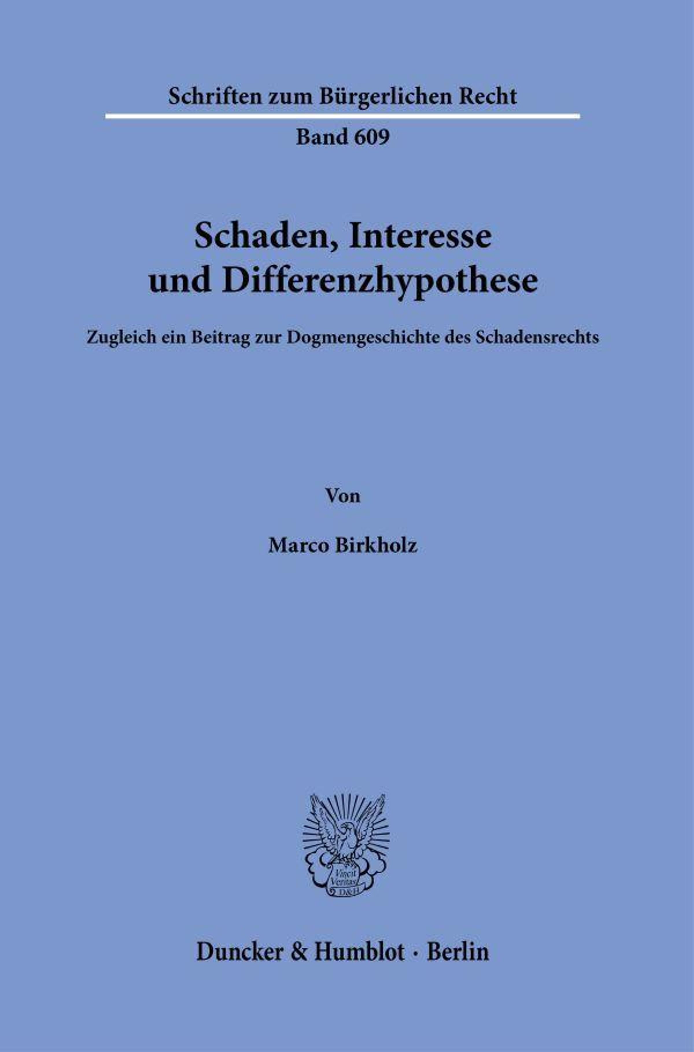 'Damages, Interest and the Difference Hypothesis. A Contribution to the History of Doctrine in Tort Law': The state of legal disorder that exists in the dogma of tort law is examined in a longitudinal study of the history of dogma to determine its origins. To this end, the present work focuses on the basic concepts of tort law. The origins of the difference hypothesis are examined and its transferability to contemporary tort law is critically questioned. The long-contested concept of damages is traced back to its conceptual and dogmatic core.