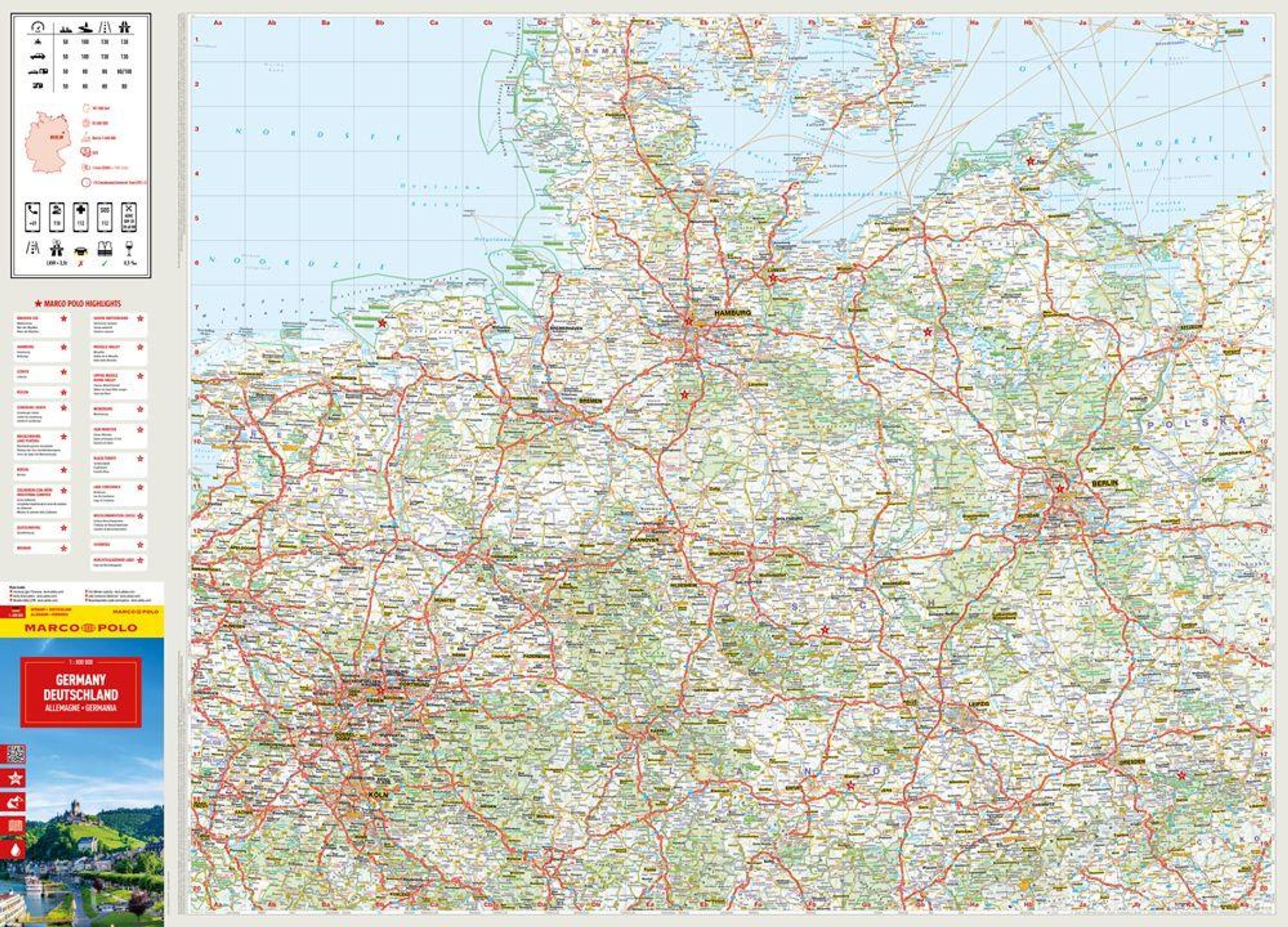 Die MARCO POLO Reisekarte Deutschland - Die Karte für Urlaubsplaner und Entdeckerinnen im Maßstab 1: 800.000. Kein Highlight mehr verpassen - die MARCO POLO Karte zeigt die bedeutendsten kulturellen und landschaftlichen Sehenswürdigkeiten auf der Karte und in einer zusätzlichen Online-Sammlung. Im schützenden Kartondeckel sind einige der interessantesten Orte mit Fotos abgebildet. Die Karte ist beidseitig bedruckt und herausnehmbar. Dank dem digitalen Register kann einfach nach Orten gesucht werden. Eine übersichtliche und detailreiche Kartografie macht es einfach, die Karte zu lesen. Auf der Rückseite des Deckels befindet sich eine Übersichtskarte mit allen Highlights. Hilfreiche Details und Verkehrsinformationen machen die Reisekarte auch zur perfekten Straßenkarte: entspannt ankommen und alles gesehen haben.