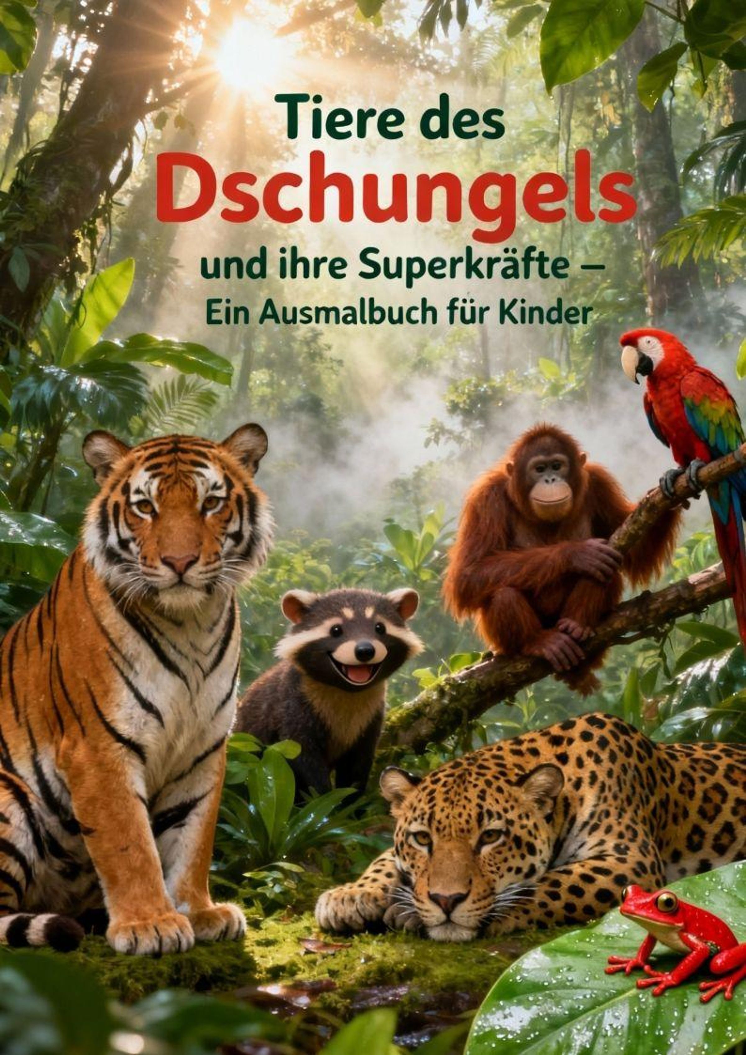 Willkommen im Dschungel! In diesem liebevoll gestalteten Ausmal- und Lernbuch für Kinder entdecken kleine Abenteurer die faszinierenden Superkräfte der Tiere des Dschungels. Der kluge Papagei Professor ARA führt als sympathischer Begleiter durch das Buch und erklärt kindgerecht, was Jaguar, Affe, Frosch, Faultier & Co. so besonders macht. Jede Tierseite kombiniert spannendes Wissen mit kreativen Ausmalbildern - perfekt zum Lernen, Malen und Entdecken.