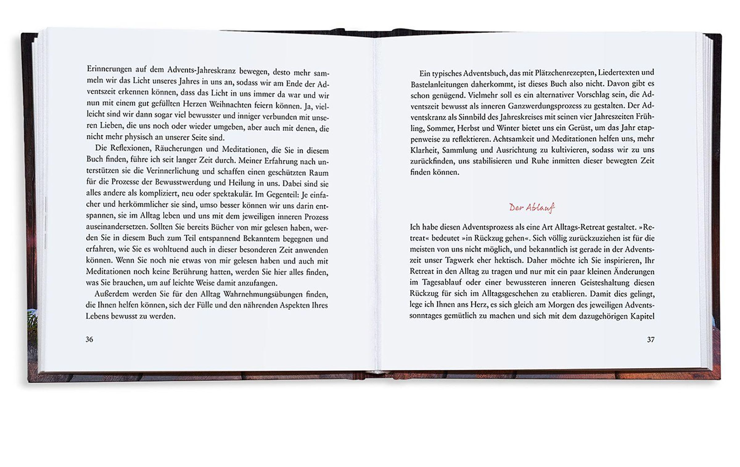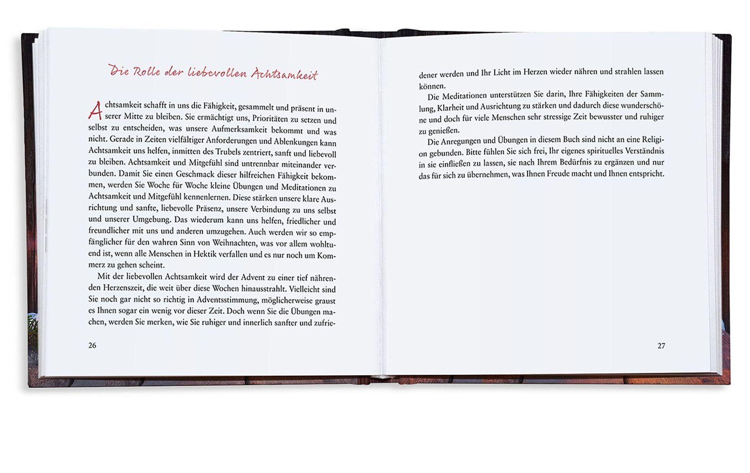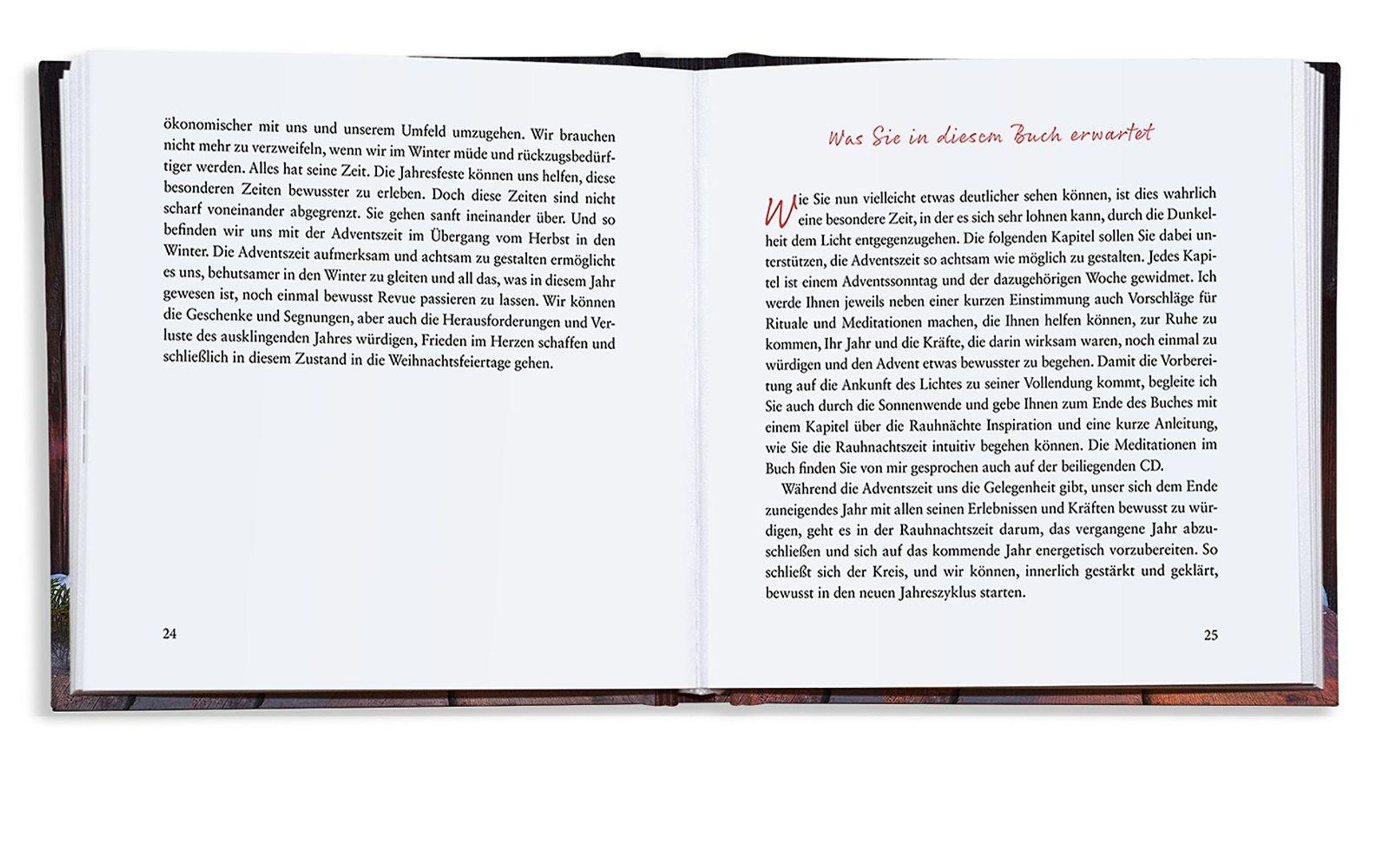 Die bekannte Achtsamkeits-Lehrerin gestaltet hier erstmalig ein Alltags-Retreat für alle, die sich während der Vorweihnachtszeit immer mal wieder kleine meditative Auszeiten im Alltag gönnen wollen. Eine wunderbare innere Einkehr und spirituelle Vorbereitung vor dem schönsten Fest des Jahres mit liebevoll gestalteten praktischen Anleitungen vom 1. Advent bis zur Wintersonnenwende und den heiligen Nächten. Dass Meditation auch in stressigen Zeiten durch Achtsamkeit leicht und fließend in den Alttag einbezogen werden kann, zeigt Maren Schneiders kostbares kleines Advents-Buch. Die zusätzliche CD mit den wichtigsten Meditationen, die von der Autorin selbst eingesprochen wurden, trägt wie immer zu einem leichten Zugang zu den Übungen und Ritualen bei.