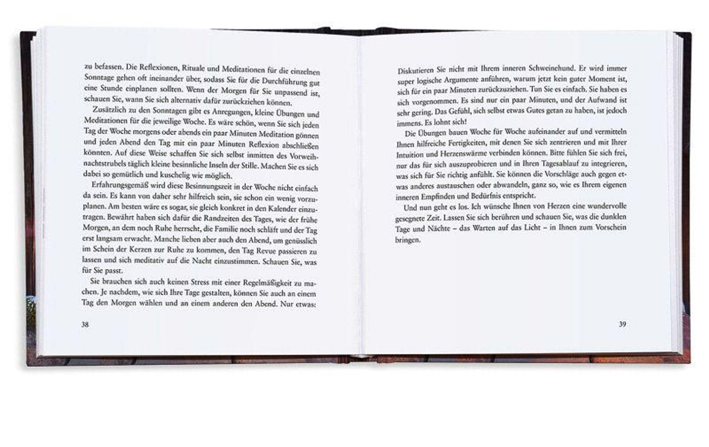 Mit der Advents-Zeit beginnt für viele eine der dunkelsten und stressigsten Zeiten im Jahr. Doch mit Hilfe dieses liebevollen und praktischen kleinen Ratgebers kann es uns gelingen, den ursprünglichen Zauber dieser Zeit wieder zu beleben. Bestseller-Autorin und Achtsamkeits-Expertin Maren Schneider bietet echte Alltags-Spiritualität mit ihren stimmungsvollen Meditationen und Ritualen, die uns helfen können, der besonderen Magie der Advents-Zeit wieder näher zu kommen.