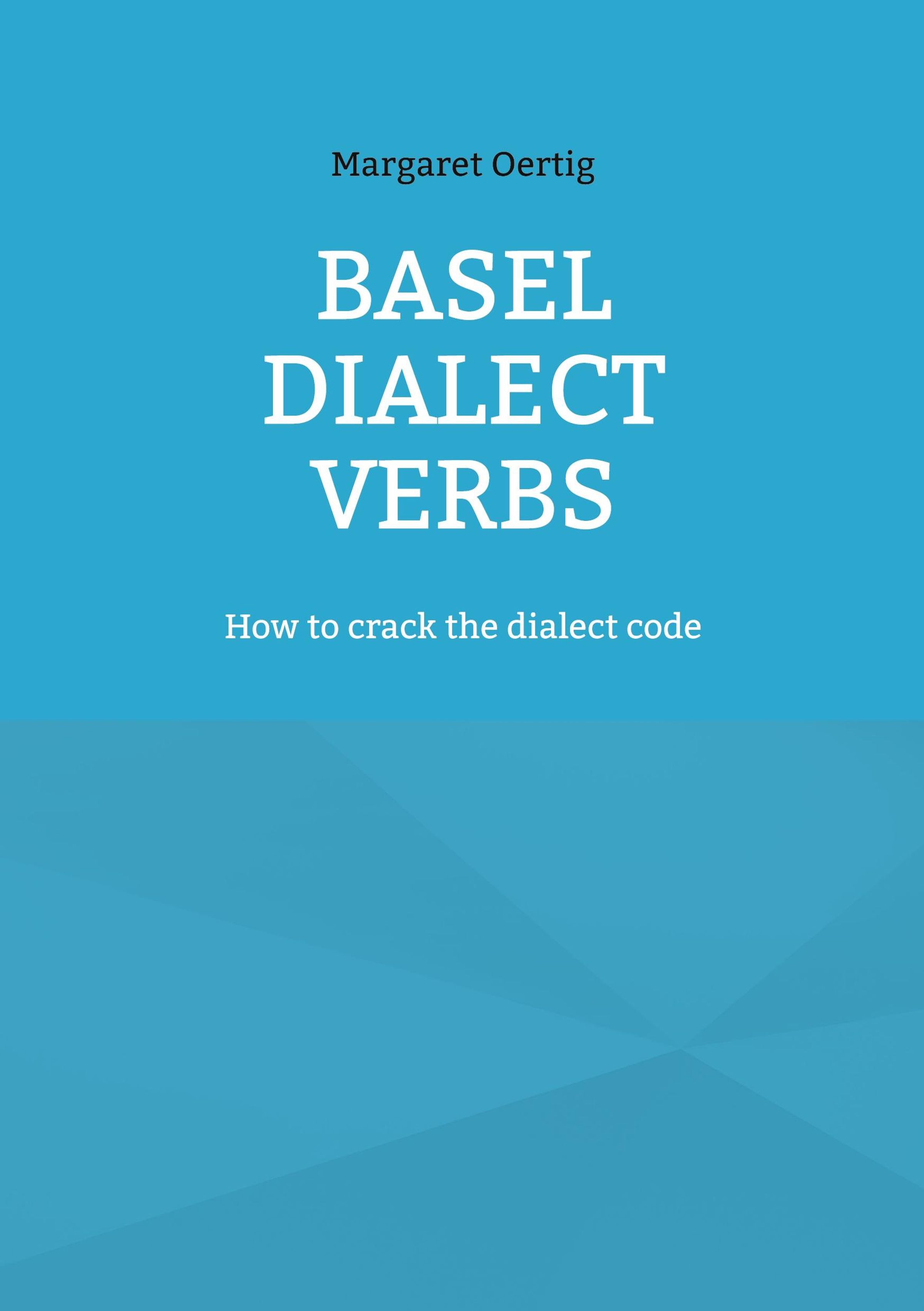 Der Titel lautet "BASEL DIALECT VERBS" mit dem Untertitel "How to crack the dialect code". Hellblauer Hintergrund., Buch