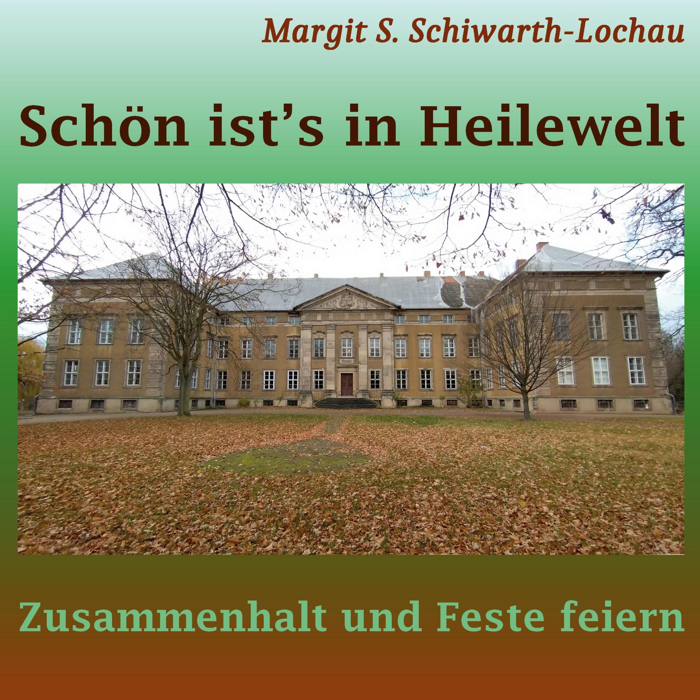 Margit S. Schiwarth-Lochau, Schön ist’s in Heilewelt, Zusammenhalt und Feste feiern. Historisches Gebäude mit Herbstlaub., Buch