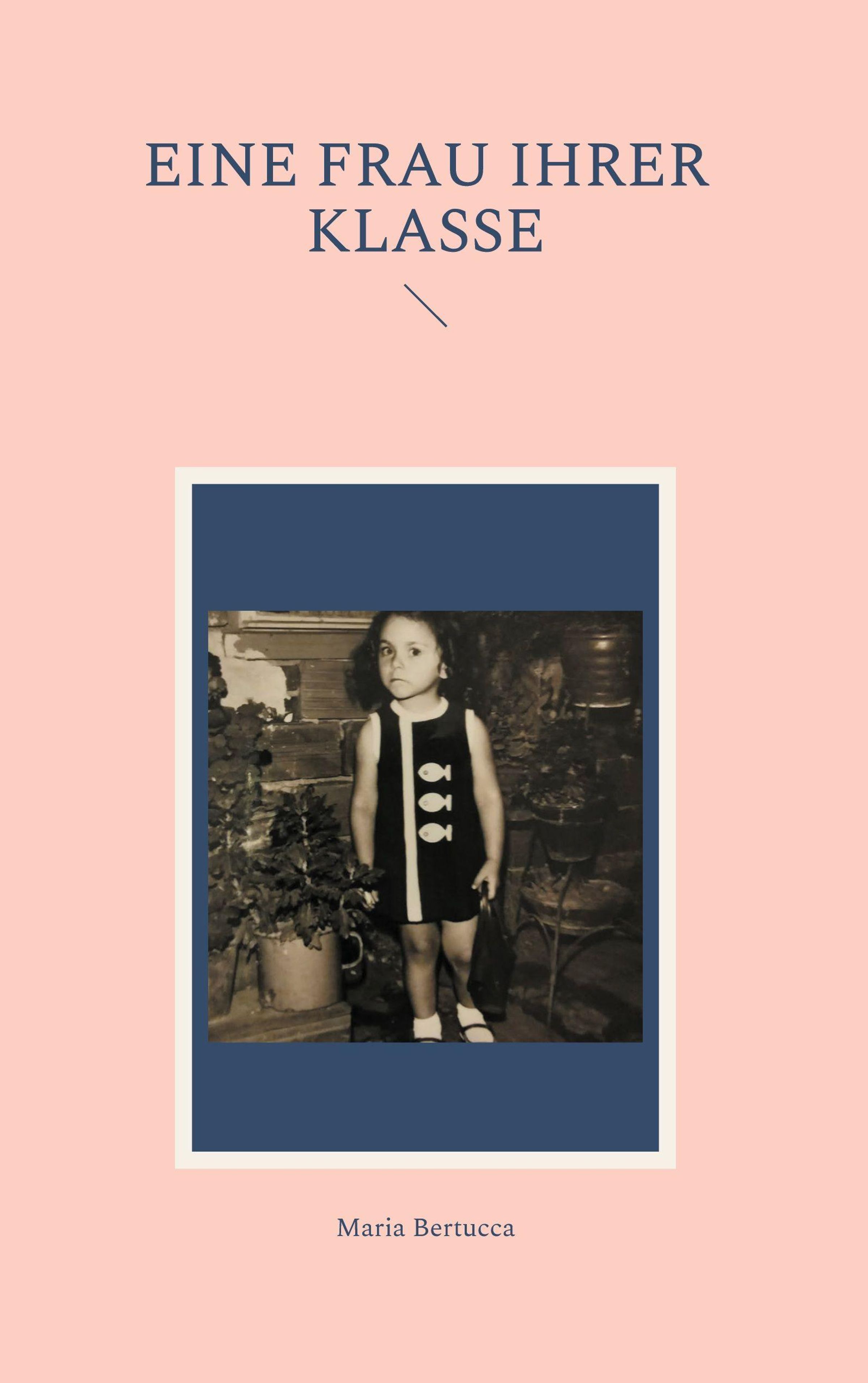 "EINE FRAU IHRER KLASSE" oben, "Maria Bertucca" unten. Schwarz-Weiß-Foto eines Mädchens in einem Kleid mit Fischmotiven., Buch