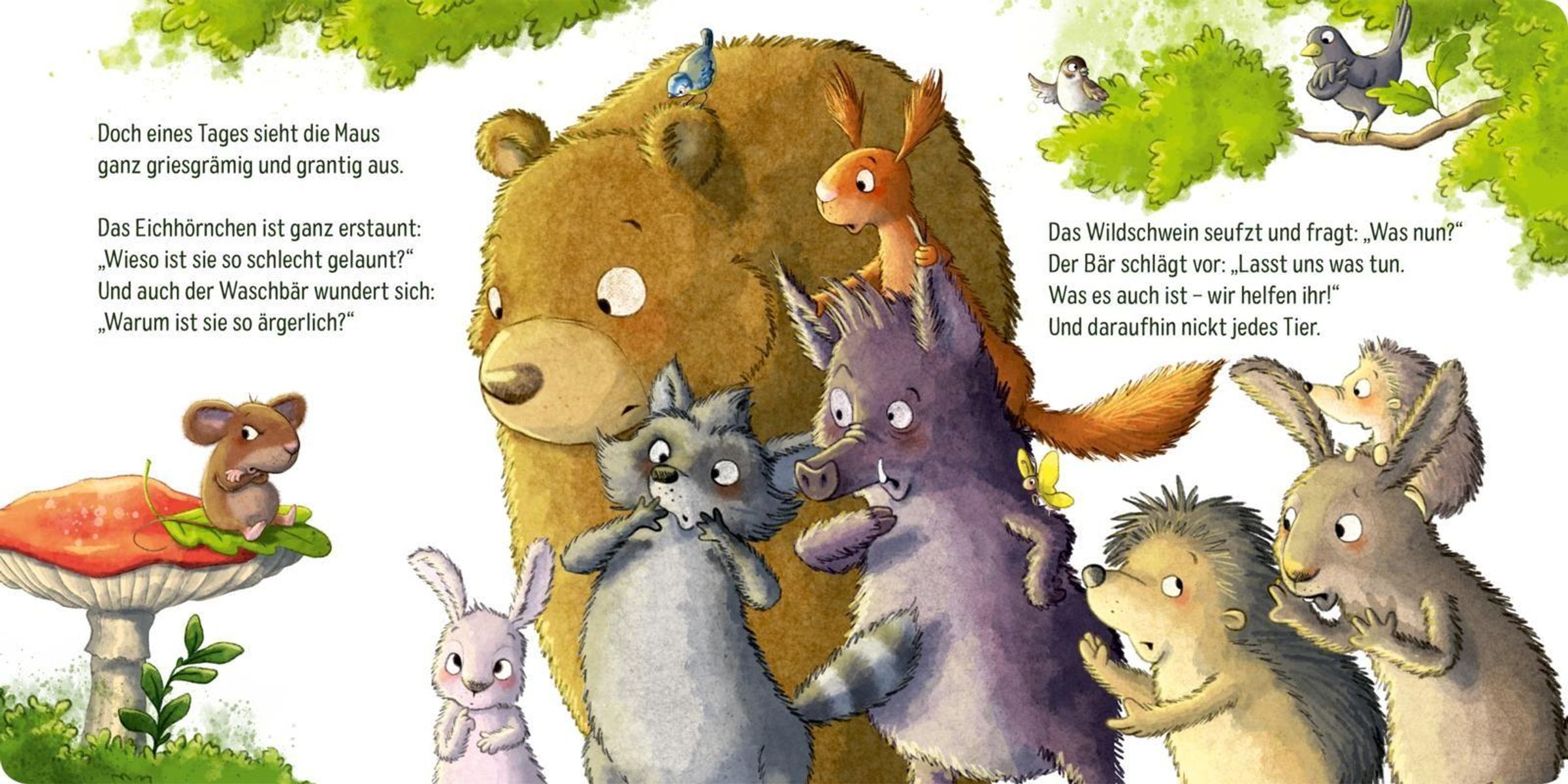 Die kleine Maus ist schlecht gelaunt und niemand versteht, warum. Ihre Freunde wollen sie aufheitern: sie kochen, backen, singen, tanzen - doch nichts scheint zu helfen. Bis ein lauter Pups die Lösung bringt! Aha, wenn es zwickt und zwackt im Bauch, merkt man das an der Laune auch! Und schon hat sich die trübe Stimmung im wahrsten Sinne des Wortes in Luft aufgelöst!