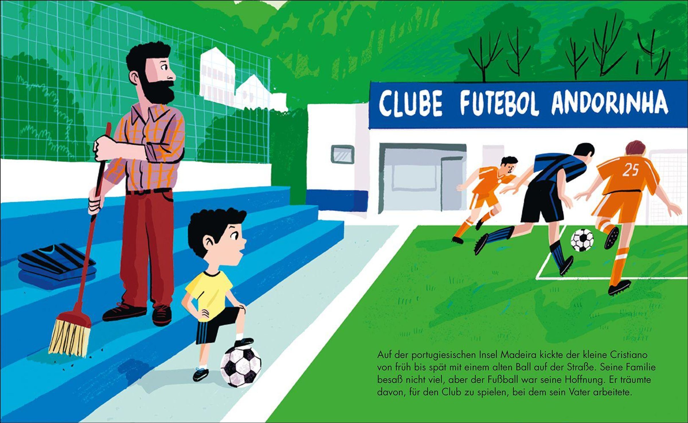 Mit sieben Jahren schon kickte Cristiano Ronaldo in der Mannschaft eines Lokalvereins auf der portugiesischen Insel Madeira, sein Vater war dort Zeugwart. Sein außerordentliches Talent fiel auf. Auch den Trainern der Talentschmiede Sporting Lissabon. Als er diese verließ, wurde er bereits heiß gehandelt. Mit seinem raffinierten Spiel, seiner Schnelligkeit, seinen Dribblings, seiner Torsicherheit, seinem Selbstbewusstsein führte der Ausnahmespieler Manchester United, Real Madrid, Juventus Turin und die portugiesische Nationalmannschaft an die Spitze der Fußballwelt.