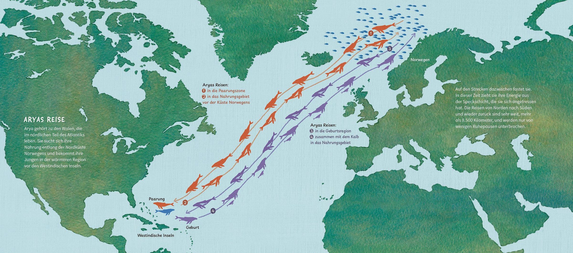 - Ein Sachbilderbuch zum Vorlesen für Kinder ab 4 Jahren über die Reise, den Lebensraum und das Familienleben von Buckelwalen im Atlantischen Ozean