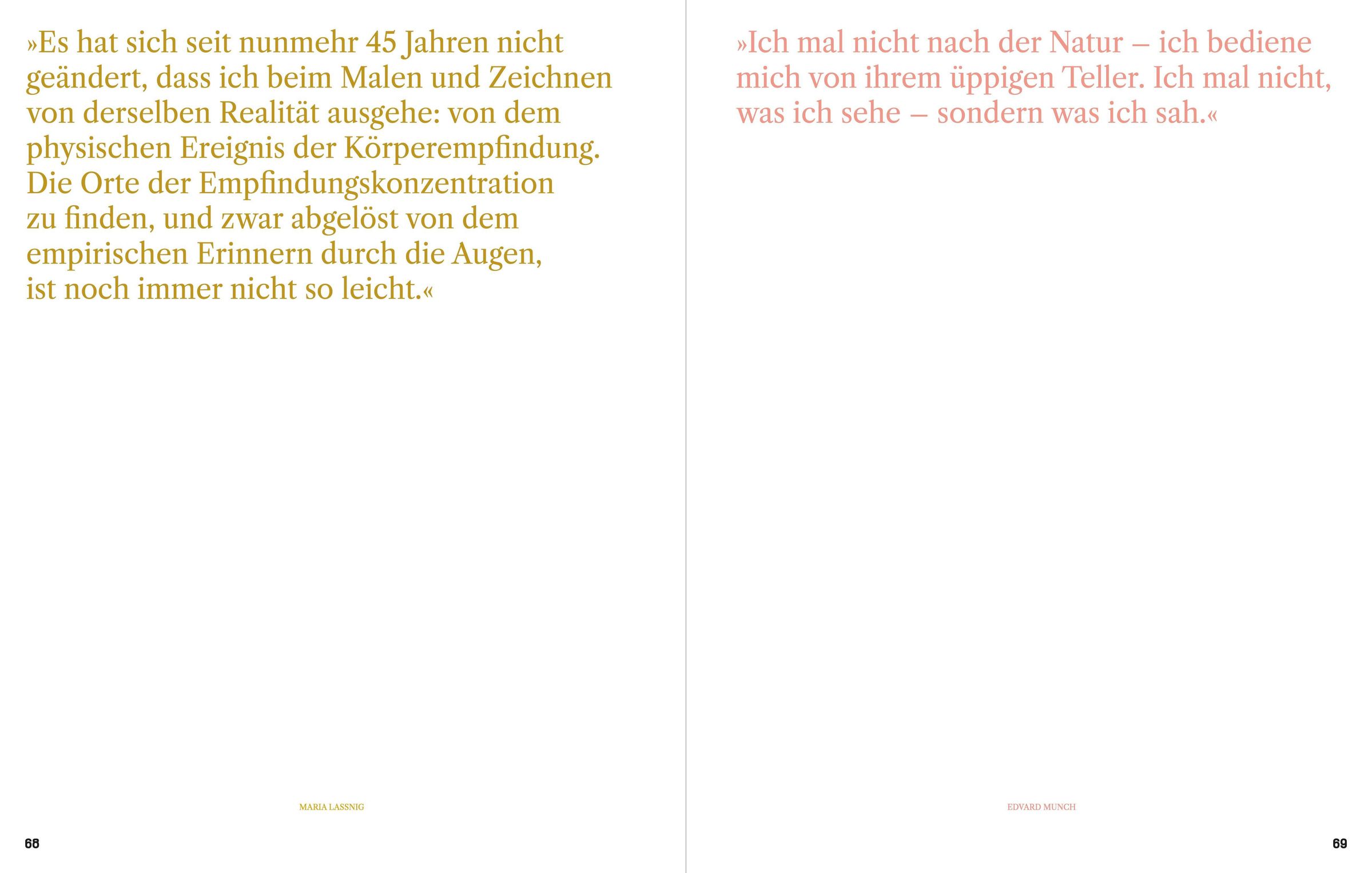 Die österreichische Künstlerin Maria Lassnig (geb. 1919 in Kappel am Krappfeld, gest. 2014 in Wien) und der norwegische Maler Edvard Munch (geb. 1863 in Løten, gest. 1944 auf Ekely in Oslo) haben eine schonungslose Auseinandersetzung mit dem eigenen Selbst gemeinsam. Beide verbindet ein einzigartiger Umgang mit Farbe als gestalterischem Mittel und starkem Ausdruckselement für Emotionen wie Trauer, Liebe, Einsamkeit, Angst, Freude, Schmerz oder auch für körperliche Wahrnehmungsebenen. Der reich bebilderte Band begleitet die große Doppelschau der beiden Ausnahmekünstler*innen. Anlässlich der Ausstellungen in der Hamburger Kunsthalle und im Kunsthaus Zürich bietet er einen intimen Einblick in ihre Werke und zeigt Parallelen wie auch Differenzen zwischen zwei der wohl renommiertesten Positionen der jüngeren Kunstgeschichte. Mit Texten von Andreas Eriksson, Sandra Gianfreda, Sheela Gowda, Johanna Hornauer, Hans Dieter Huber, Siri Hustvedt, Brigitte Kölle, Maria Lassnig, Edvard Munch, Johanna Ortner, Ulrike Ottinger, Ashley Hans Scheirl, Luc Tuymans und anderen.
