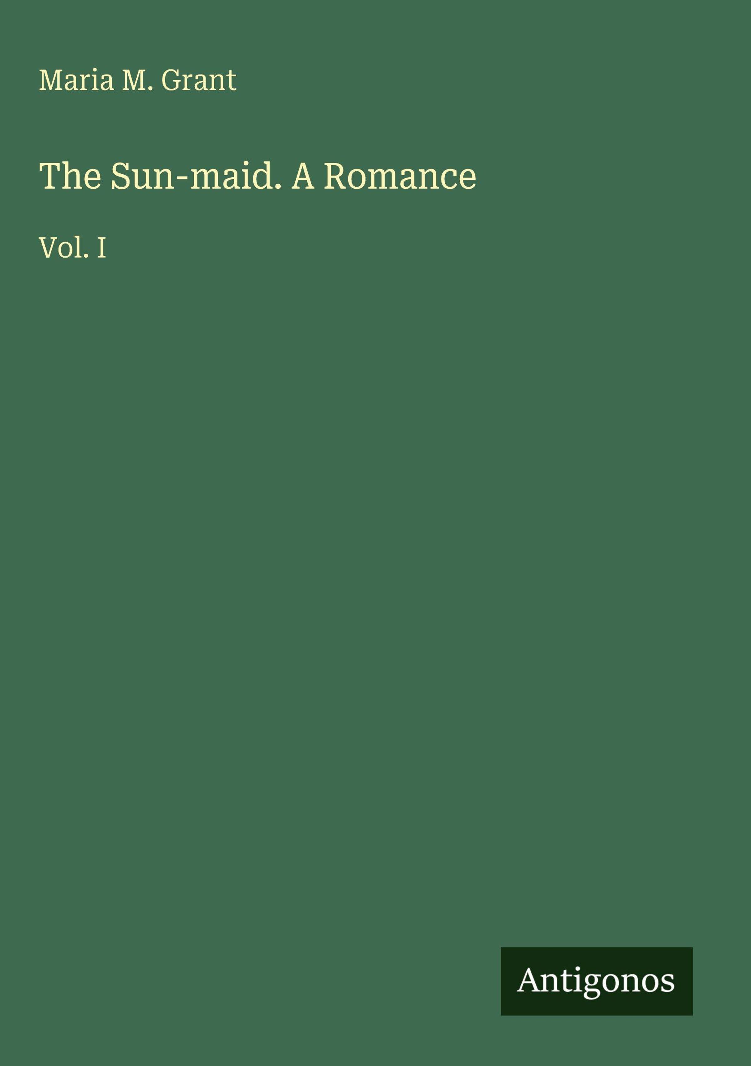 Text: "Maria M. Grant The Sun-maid. A Romance Vol. I Antigonos". Schlichtes, dunkelgrünes Cover., Buch