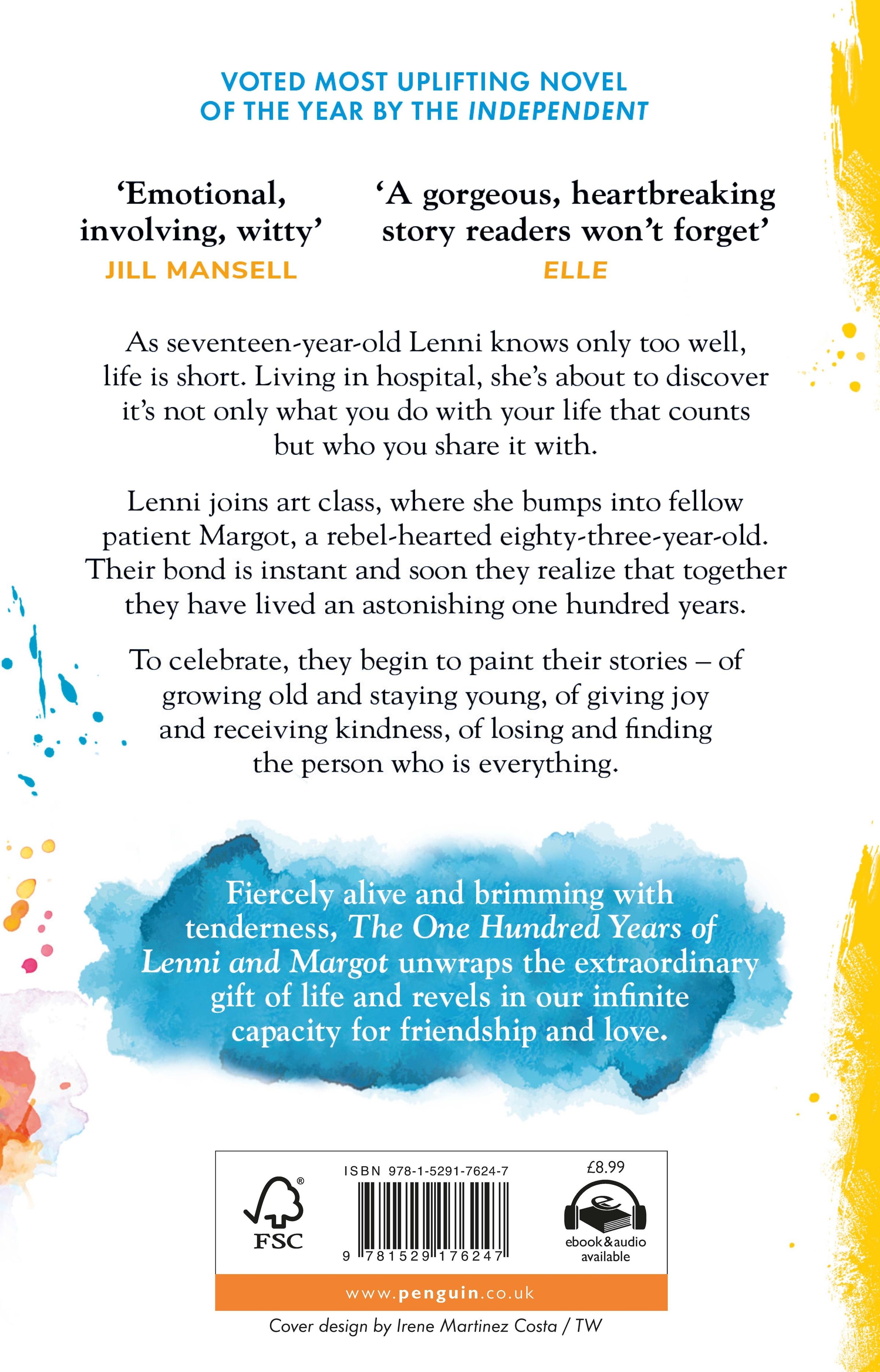 'Emotional, involving, witty and sad. Everyone is going to love Lenni and Margot' JILL MANSELL 'Lenni and Margot are two of the most wonderful, warm, witty and wise heroines I've ever met. Beautiful and glorious' CLARE POOLEY, author of The Authenticity Project Fiercely alive, disarmingly funny and brimming with tenderness, THE ONE HUNDRED YEARS OF LENNI AND MARGOT unwraps the extraordinary gift of life, and revels in our infinite capacity for friendship and love when we need them most. _______________________________________ Life is short. No-one knows that better than seventeen-year-old Lenni. But as she is about to learn, it's not only what you make of life that matters, but who you share it with. Dodging doctor's orders, she joins an art class where she bumps into fellow patient Margot, a rebel-hearted eight-three-year-old from the next ward. Their bond is instant as they realize that together they have lived an astonishing one hundred years. To celebrate their shared century, they decide to paint their life stories: of growing old and staying young, of giving joy, of receiving kindness, of losing love, of finding the person who is everything. As their friendship deepens, it becomes vividly clear that life is not done with Lenni and Margot yet. An extraordinary friendship. A lifetime of stories. Their last one begins here. --------------------------------------------- VOTED BEST UPLIFTING BOOK OF 2021 BY THE INDEPENDENT 'Full of wisdom and kindness. It is just the kind of book I adore' JOANNA CANNON 'Such a delight! I fell head over heels for Lenni and Margot, their wit and vibrancy and marvellous outlooks on life. An utter joy' ABBIE GREAVES