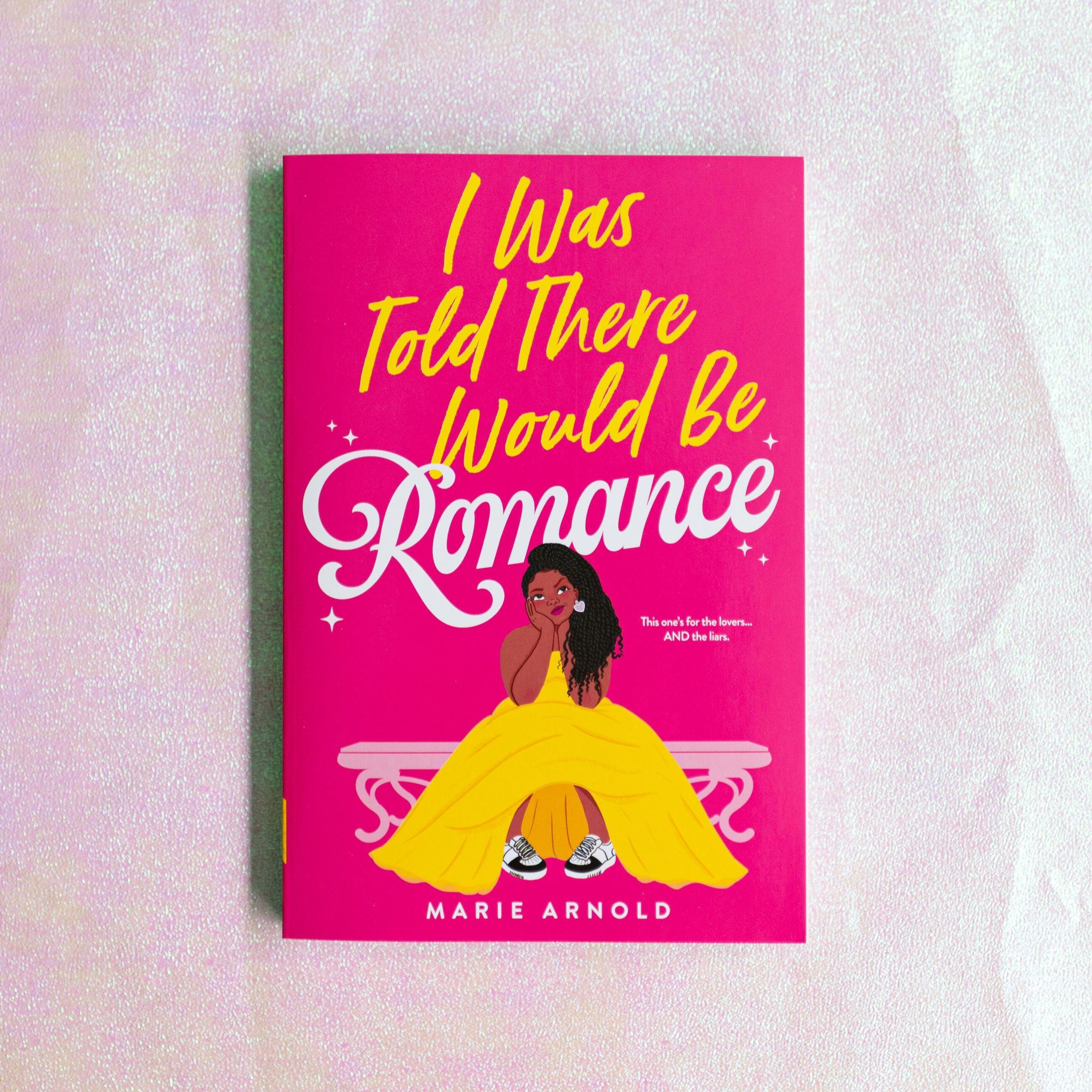 "I Was Told There Would Be Romance" steht oben. Unten "Marie Arnold". Illustration: Frau in gelbem Kleid, Sneakers, auf Bank., Buch
