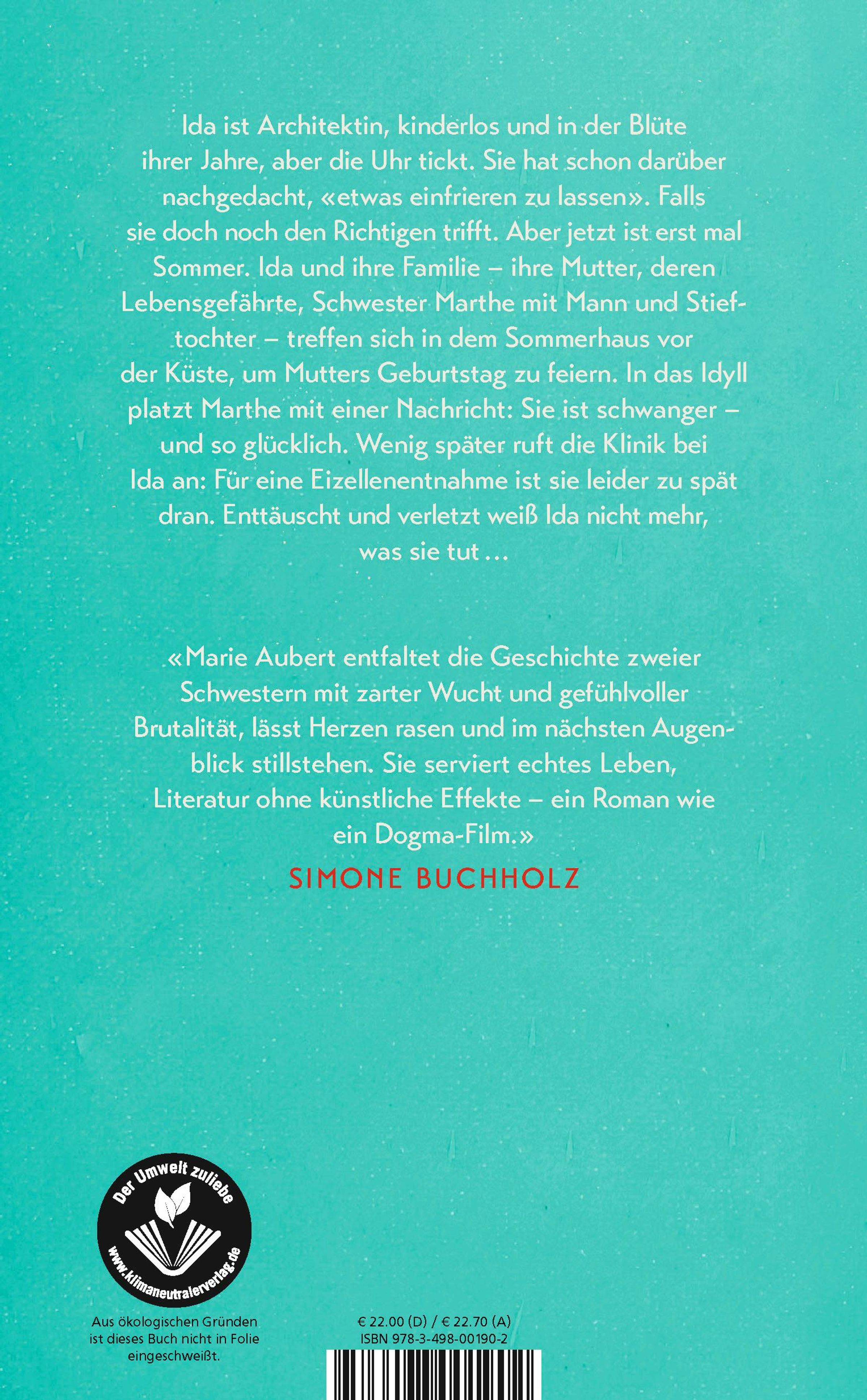 Ida ist Architektin, kinderlos und in der Blüte ihrer Jahre, aber <<die Uhr tickt>>. Sie hat schon begonnen, die Möglichkeit <<etwas einzufrieren>> in Betracht zu ziehen. Für später. Wirklich, nur zur Sicherheit. Falls sie doch noch den Richtigen trifft und der auch Kinder will. Aber jetzt ist erstmal Sommer. Ida und ihre Familie - ihre Mutter, deren Lebensgefährte, Idas Schwester Marthe mit Mann und Stieftochter - treffen sich in ihrem Sommerhaus vor der Küste, um Mutters Geburtstag zu feiern und ein paar schöne, gemeinsame Tage zu haben. In dieses Idyll platzt Marthe mit einer phantastischen Nachricht: Sie ist schwanger, nach Jahren erfolgloser Versuche, und so glücklich. Wenig später eröffnet die Klinik in Göteborg Ida telefonisch, sie sei für eine Eizellenentnahme leider <<zu spät>> dran. Ausgerechnet in dem Moment, in dem Marthe Ida ihr Familienglück unter die Nase reibt, zerplatzt deren Traum.