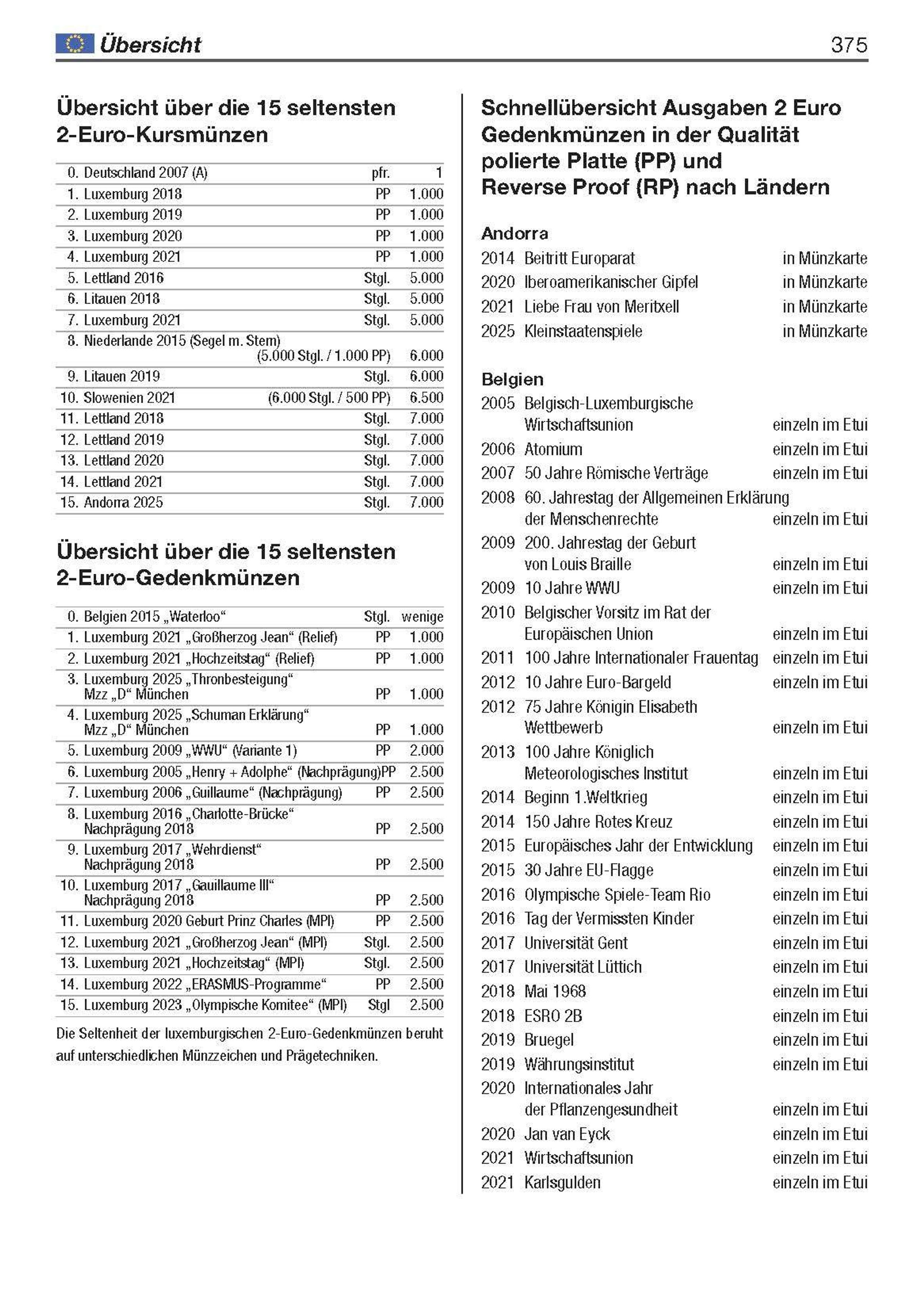 - Katalog der 2-Euro-Umlauf- und -Gedenkmünzen aller Euro-Staaten