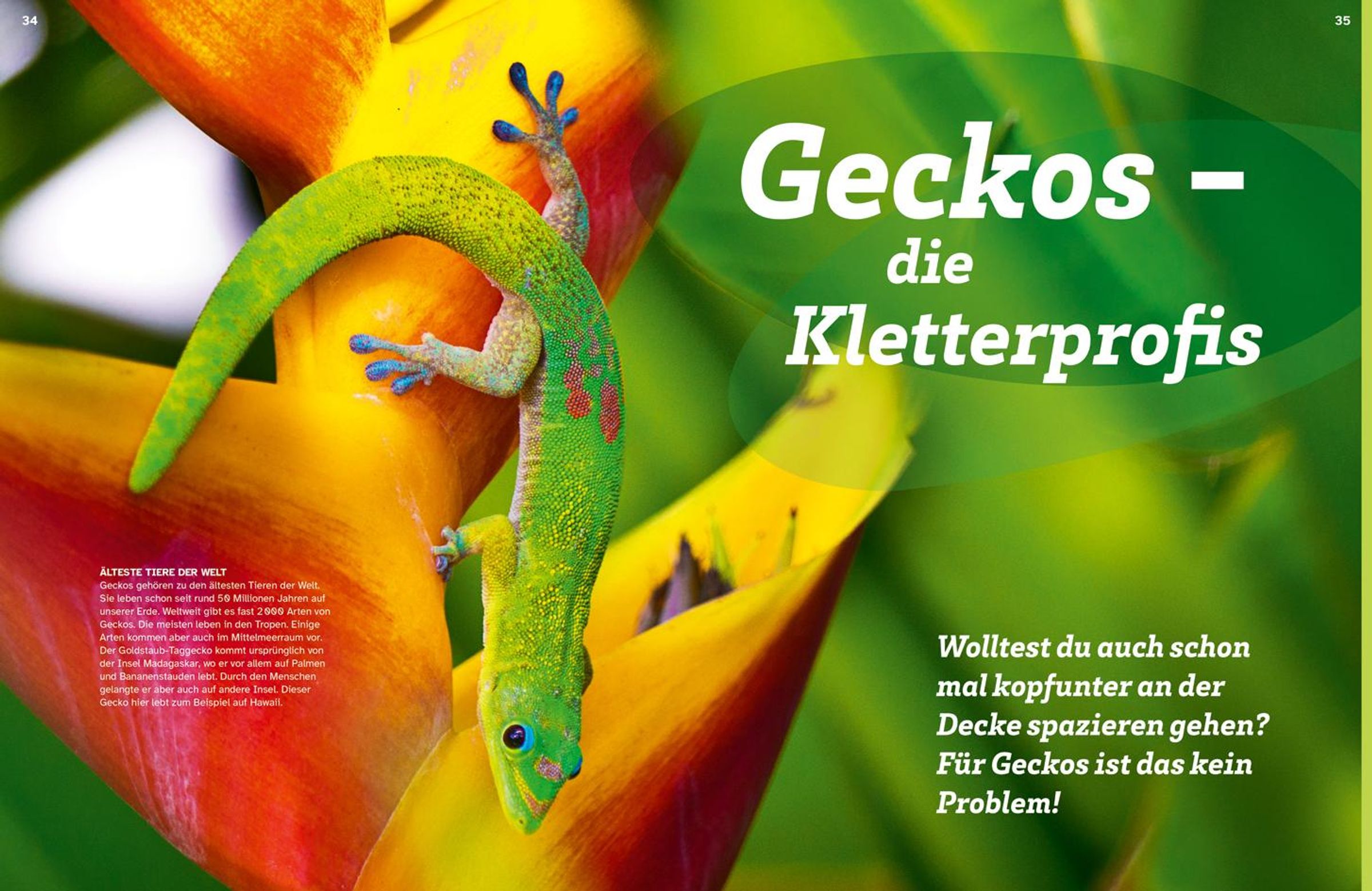 Echsen gehören zu den spannendsten und interessantesten Tieren überhaupt. Schließlich haben viele Vertreter dieser Reptilien Eigenschaften, die im Tierreich ziemlich einmalig sind. Für Geckos scheinen die Gesetze der Schwerkraft nicht zu gelten. Sie können nämlich an der Decke spazieren gehen. Stirnlappen-Basilisken wiederum können über das Wasser laufen. Chamäleons ändern blitzschnell ihre Farbe und setzen ihre lange Zunge als Waffe ein. Und damit nicht genug: Eidechsen werfen bei Gefahr problemlos ihren Schwanz ab! Welche Echse spritzt Blut aus ihren Augen und warum macht sie das? Und welche Echse ist eigentlich die schnellste? WAS IST WAS beantwortet all diese und viele weitere Kinderfragen auf Augenhöhe und zeigt die Welt der faszinierenden Tiere. Geeignet für Kinder ab 8 Jahren.
