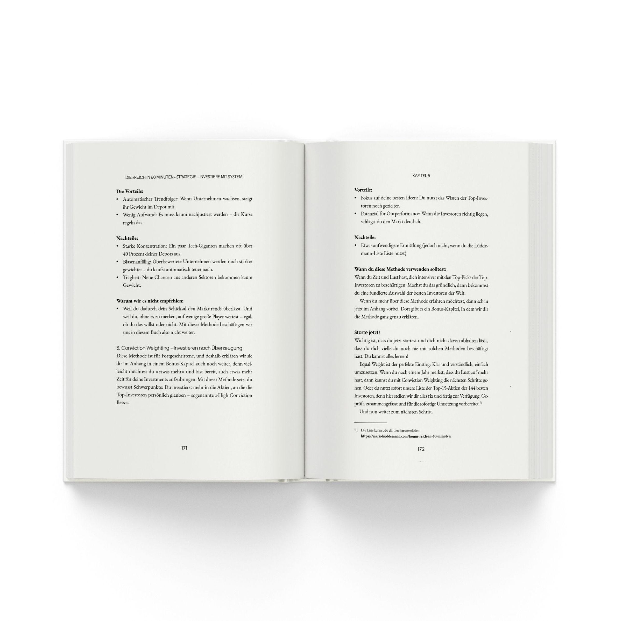 Du arbeitest, sparst, investierst vielleicht sogar schon und bemühst dich, dein Geld zu vermehren - und trotzdem kommt dein Vermögen nicht wirklich vom Fleck? Dieses Buch ist für alle, die genug davon haben, ihr Geld auf Konten liegen zu lassen, die real an Wert verlieren, oder sich von widersprüchlichen Finanzratschlägen verunsichern zu lassen. Börsenprofi Mario Lüddemann zeigt dir, wie du aus diesem Kreislauf aussteigst und ein System nutzt, das dich Schritt für Schritt in Richtung finanzielle Freiheit führt. "Reich in 60 Minuten" steht für eine einfache, praxiserprobte Investmentstrategie, die auf den Prinzipien der erfolgreichsten Investoren der Welt basiert. In diesem Buch erfährst du, wie Größen wie Warren Buffett oder Ray Dalio wirklich investieren. Mario Lüddemann und sein Team haben daraus ein klares, nachvollziehbares Konzept entwickelt, das es dir ermöglicht, mit nur 60 Minuten Zeitaufwand pro Jahr ein hochwertiges, langfristig wachsendes Aktienportfolio aufzubauen - ohne Zocken, ohne komplizierte Chartanalysen und ohne permanenten Stress. Dieses Buch nimmt dich mit auf eine Reise vom Hamsterrad der finanziellen Unsicherheit hin zu bewusstem, selbstbestimmtem Investieren. Es räumt mit Mythen auf, zeigt dir typische Denkfehler und macht deutlich, warum es entscheidend ist, heute zu starten statt morgen. Du erhältst einen konkreten Fahrplan, fundierte Backtests, Einblicke in die Top-15-Aktien der Superinvestoren sowie ein starkes Mindset für nachhaltigen Vermögensaufbau. Egal, ob du gerade erst beginnst oder bereits investierst: Mit der "Reich in 60 Minuten"-Strategie gewinnst du Klarheit, Struktur und Kontrolle über deine finanzielle Zukunft. Denn reich wirst du nicht durch Hoffen, sondern durch Handeln.