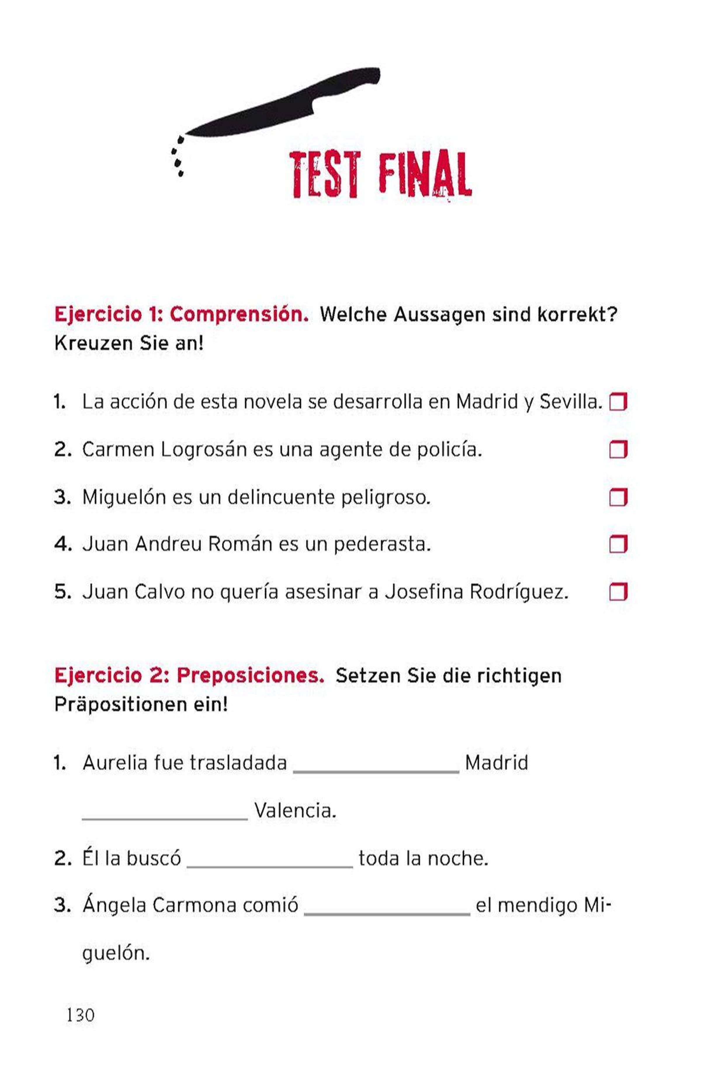 - Infokästen zu Sprache und Grammatik: Zusätzliche Informationen, Tipps und Wissenswertes zu Sprache, Grammatik und Landeskunde runden den Lernkrimi Thriller "Marionetas de la muerte" ab.