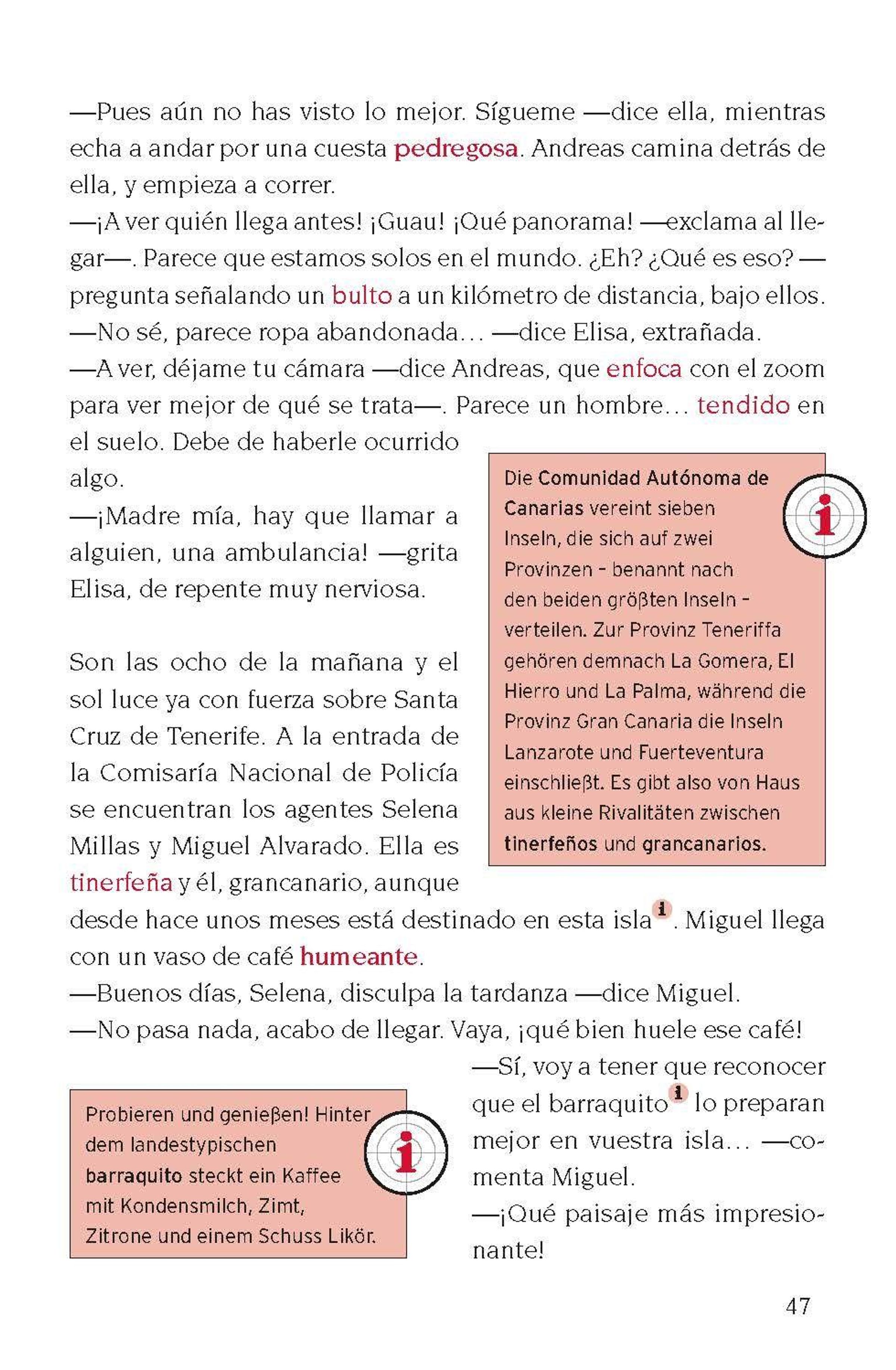 Das erprobte Format der Reihe Lernkrimi hilft mit authentischen Texten beim Erlernen der spanischen Sprache und führt Land und Leser*innen zusammen. Ob in der Schule, im Sprachunterricht an der Universität oder im Volkshochschul-Sprachkurs - die Lernkrimis können überall eingesetzt werden. Sie lernen lieber zu Hause? Kein Problem! Insbesondere für Selbstlerner*innen bieten unsere Lernkrimis die Grundlage für einen schnellen Einstieg in die spanische Sprache und können begleitend zu jedem Lehrbuch verwendet werden.