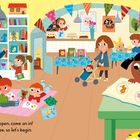 Push, pull and slide the scenes to bring the Busy Bookshopto life! Slide the wheel for more illustrations, make a dinosaur pop up or turn the pages with a push.