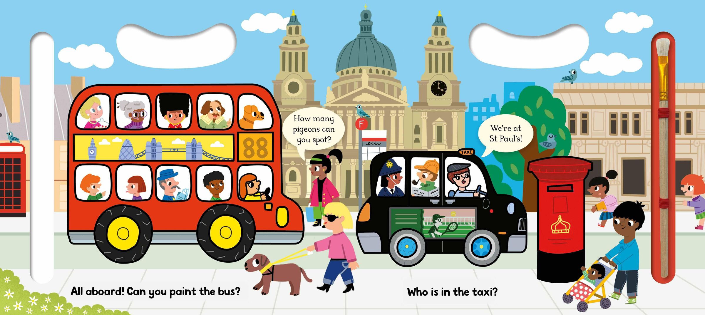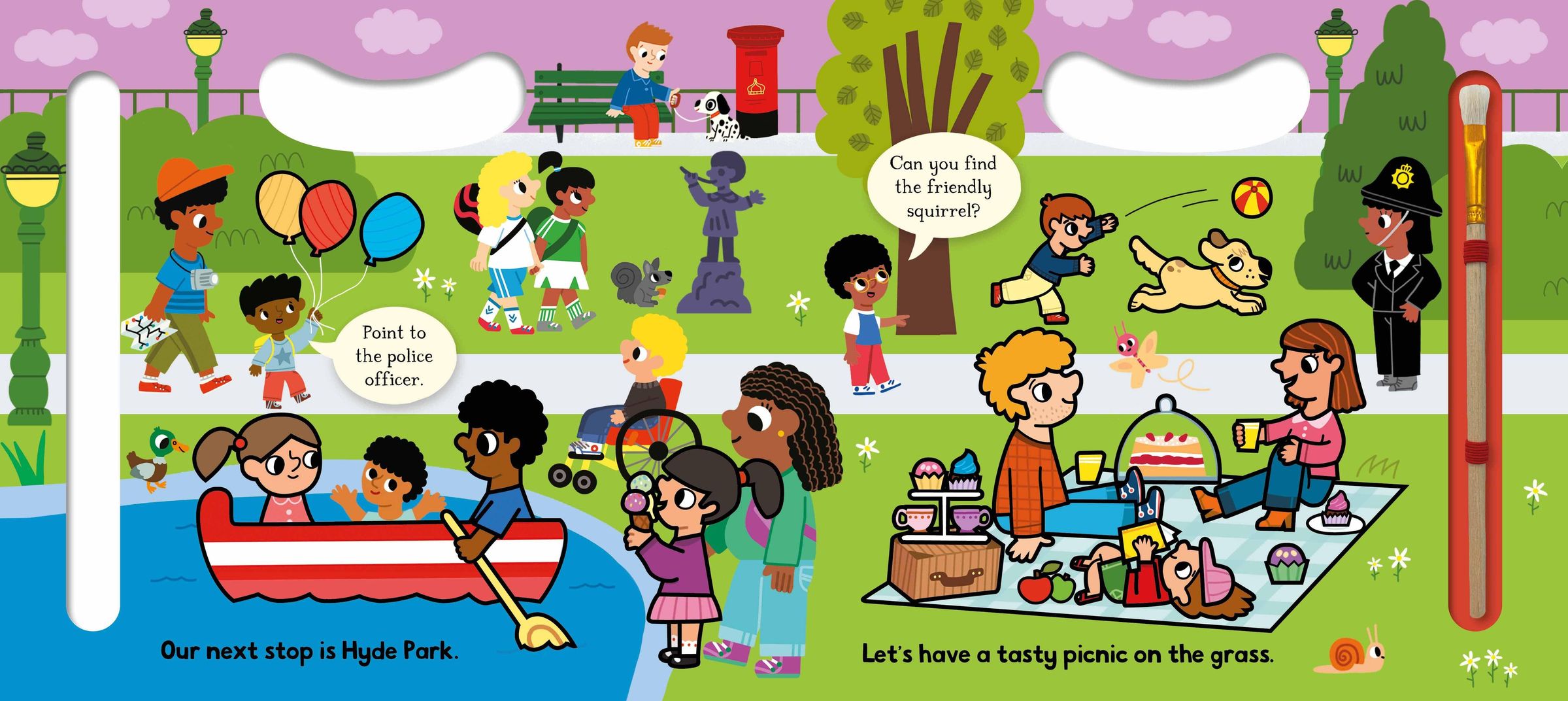 Come on a journey around busy London town, from fish and chips on the South Bank to sunny Hyde Park . . . featuring red buses, the crown jewels, pigeons, beefeaters, St Pauls cathedral and much more! Join in the fun with this brilliant reusable magic painting activity book, with colourful artwork by Marion Billet and details to spot on every page.