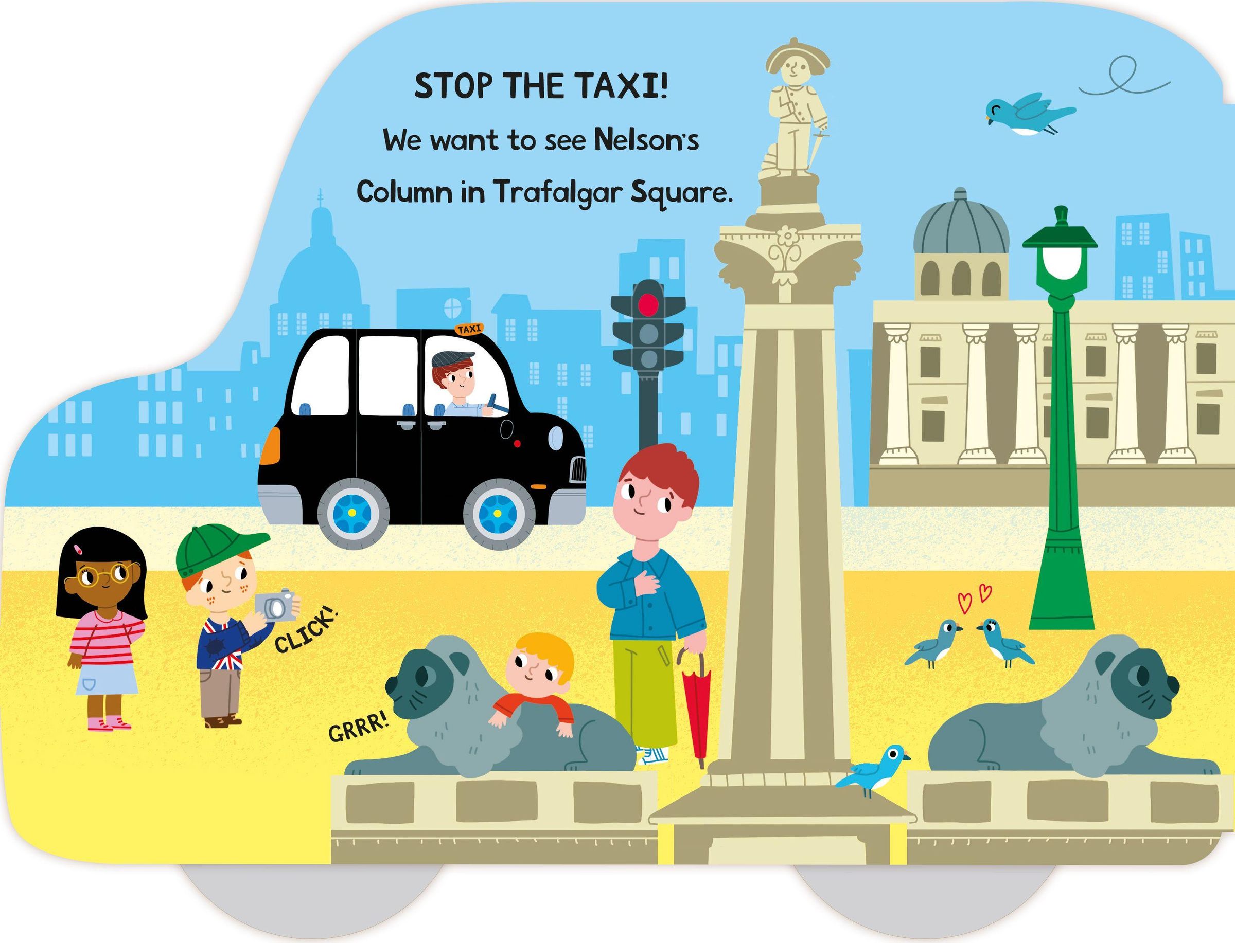 In My First London Taxi follow the black cab around the streets of London visiting the sights, with an extra detail to spot on every page. Then close the book and push it along on its four moving wheels and go on your own journey!