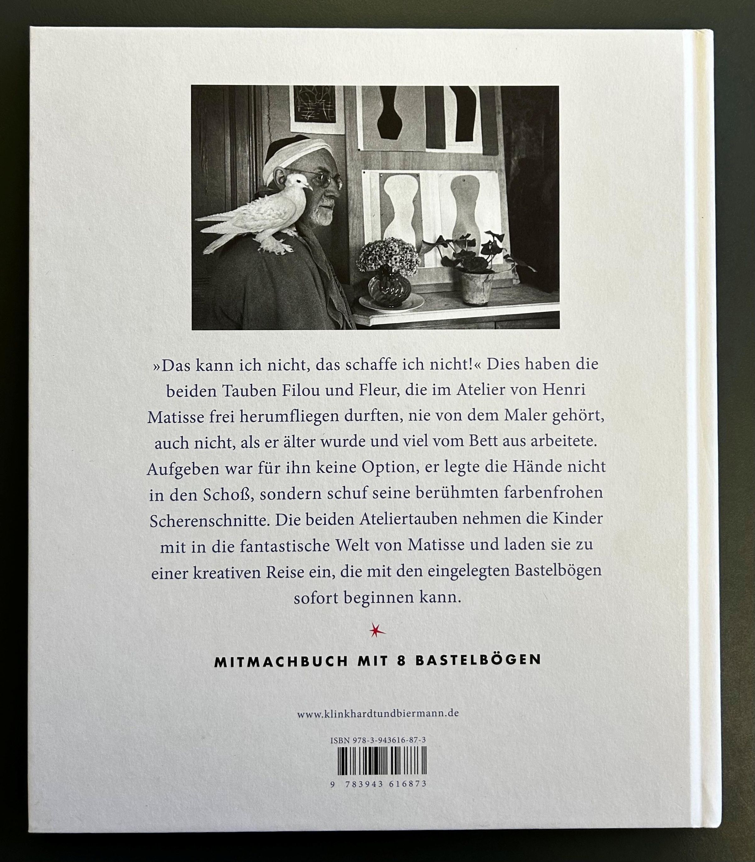 Aus farbigem Papier schnitt Matisse wundersame Pflanzen, Tiere, Figuren und Formen aus, die er zu einzigartigen Bildern, seinen berühmten Cut-outs, zusammenfügte. Mit der Schere holte er sich in seinem letzten Lebensjahrzehnt buchstäblich die Sterne vom Himmel. In vielen seiner Cut-outs begegnen sie uns, ebenso wie zauberhafte Wesen und farbenfrohe Formen. Seine Kompositionen sind nicht nur berühmte Meisterwerke der Kunst, sondern stehen auch für das Überwinden von scheinbar unüberbrückbaren Hindernissen. Die beiden Ateliertauben nehmen die Kinder mit in die fantastische Welt von Matisse, erzählen über den berühmten Maler und laden sie zu einer kreativen und mutigen Reise ein, die sofort beginnen kann -- farbige Papierbögen sind im Buch eingelegt und warten nur darauf, in individuelle Kunstwerke verwandelt zu werden.