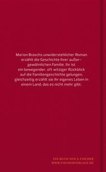 Marion Braschs Vater war stellvertretender Kulturminister der DDR, die Brüder, darunter Thomas Brasch, wurden als Schriftsteller, Dramatiker und Schauspieler bekannt. Mit überraschender Leichtigkeit erzählt die 'kleine Schwester' die dramatischen Ereignisse in ihrer Familie - Erfolg, Revolte, Verlust der drei Brüder - und folgt ihrem Weg durch Abenteuer und Wirren in die eigene Freiheit.