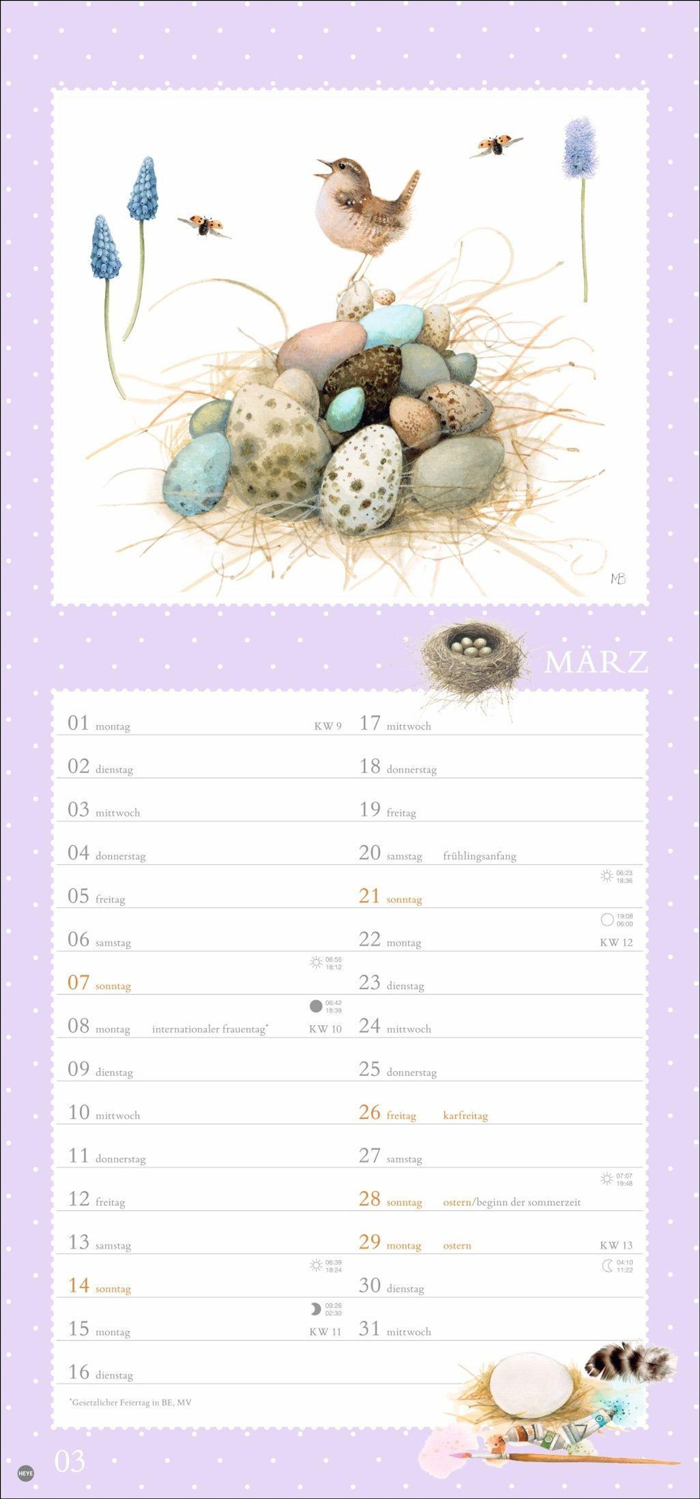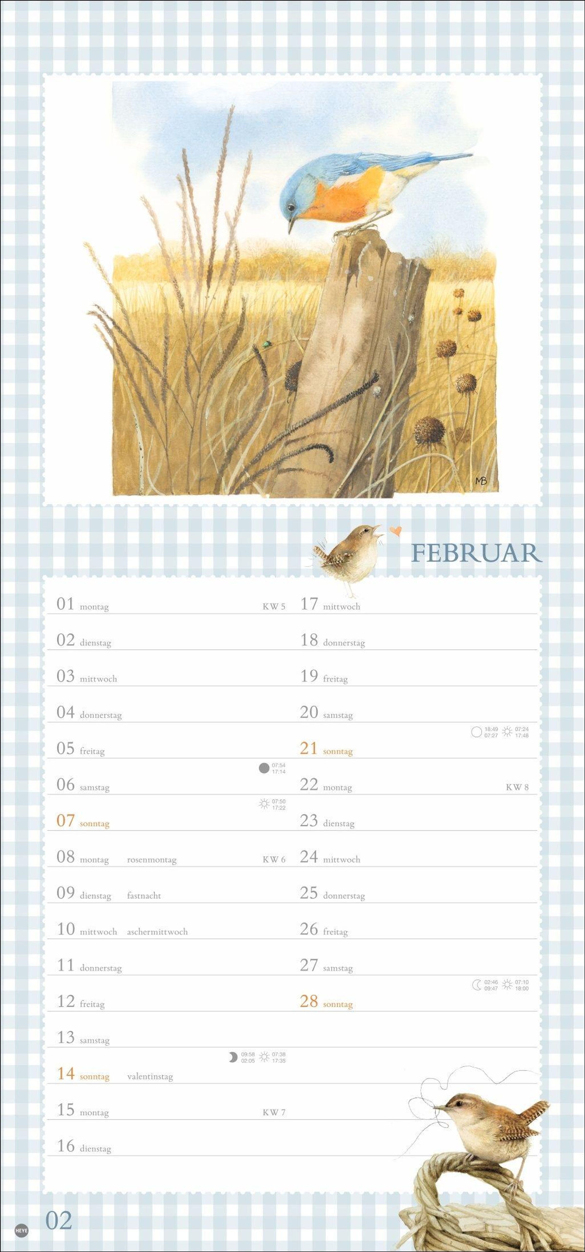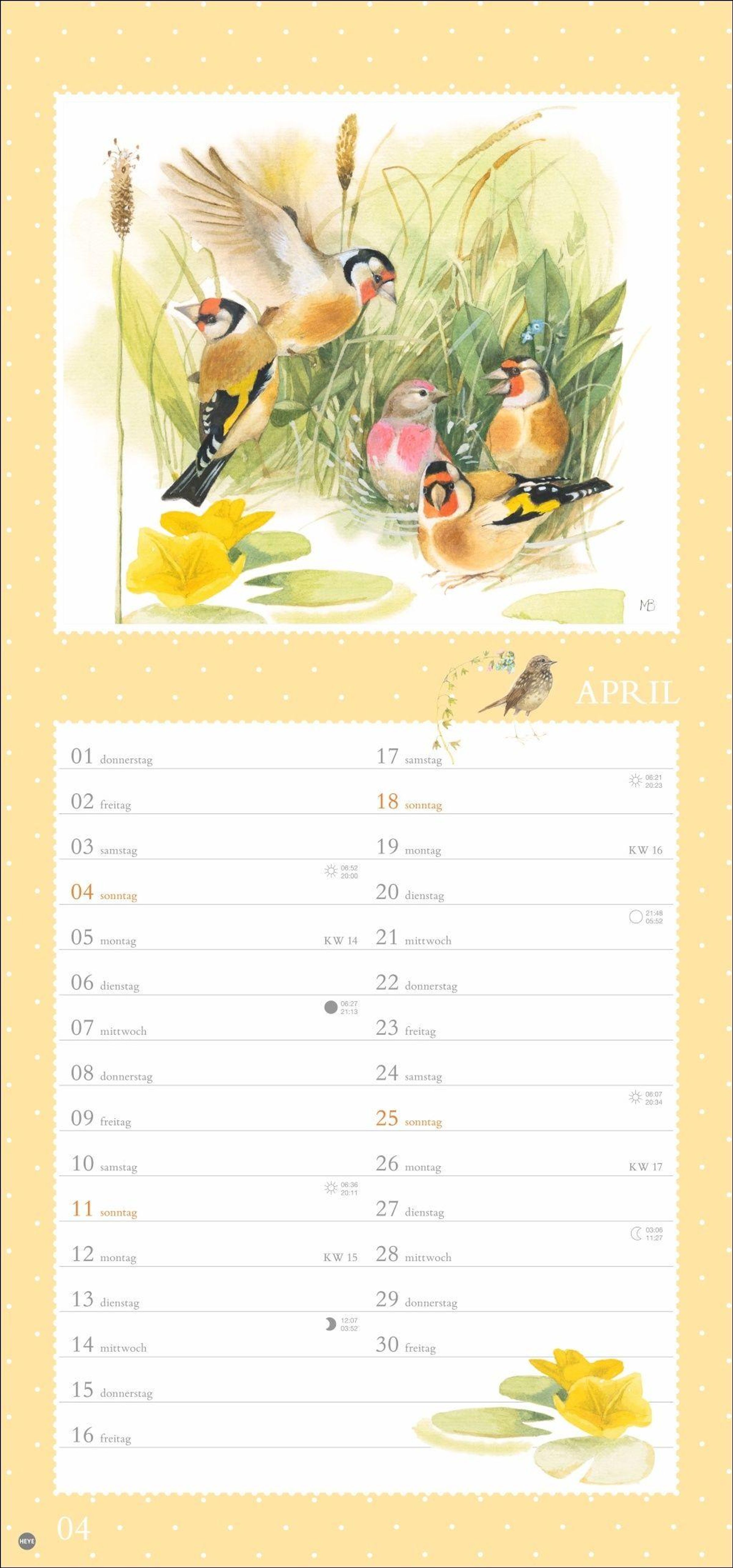Vögel, Blumen, Schmetterlinge - der Monatskalender mit der Malerei von Marjolein Bastin