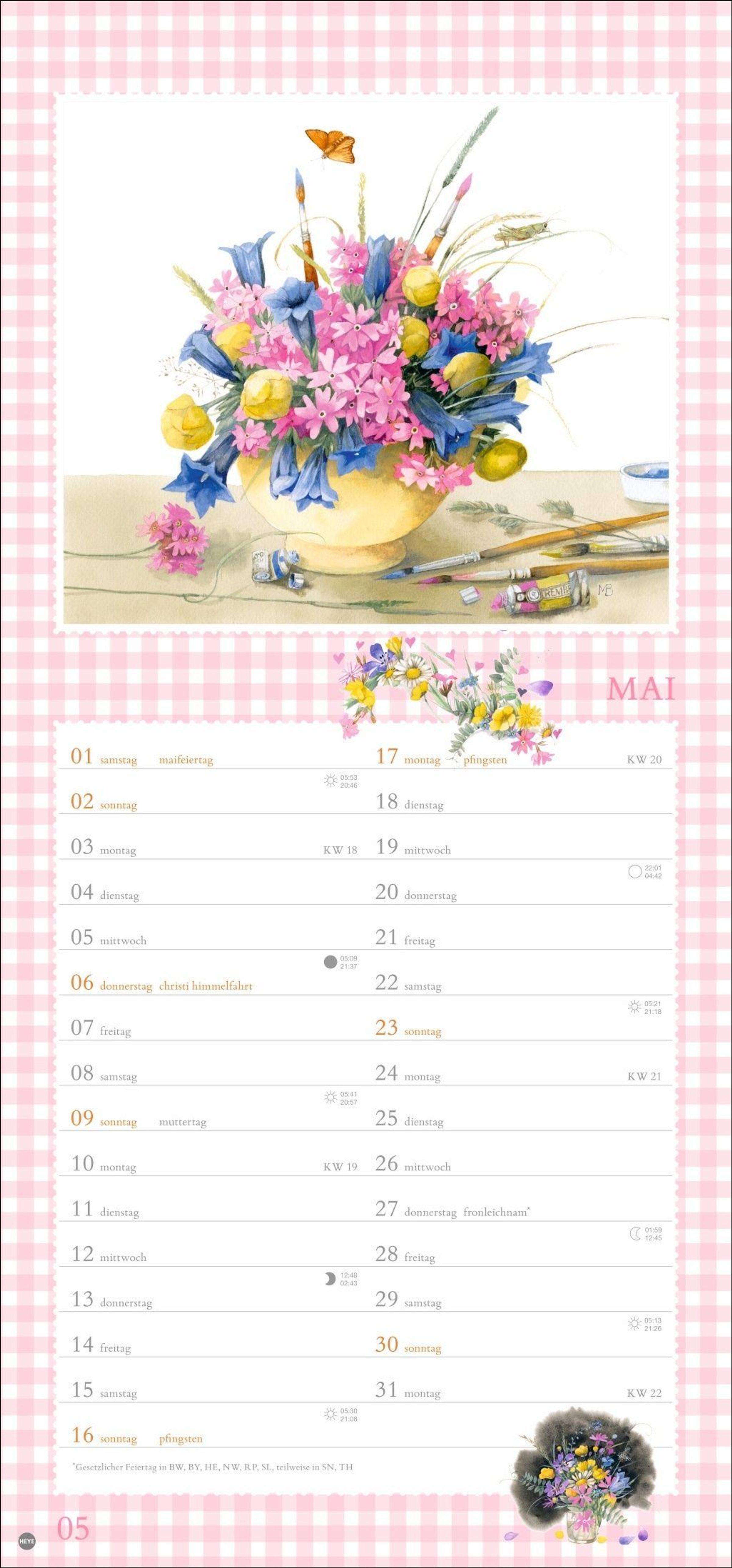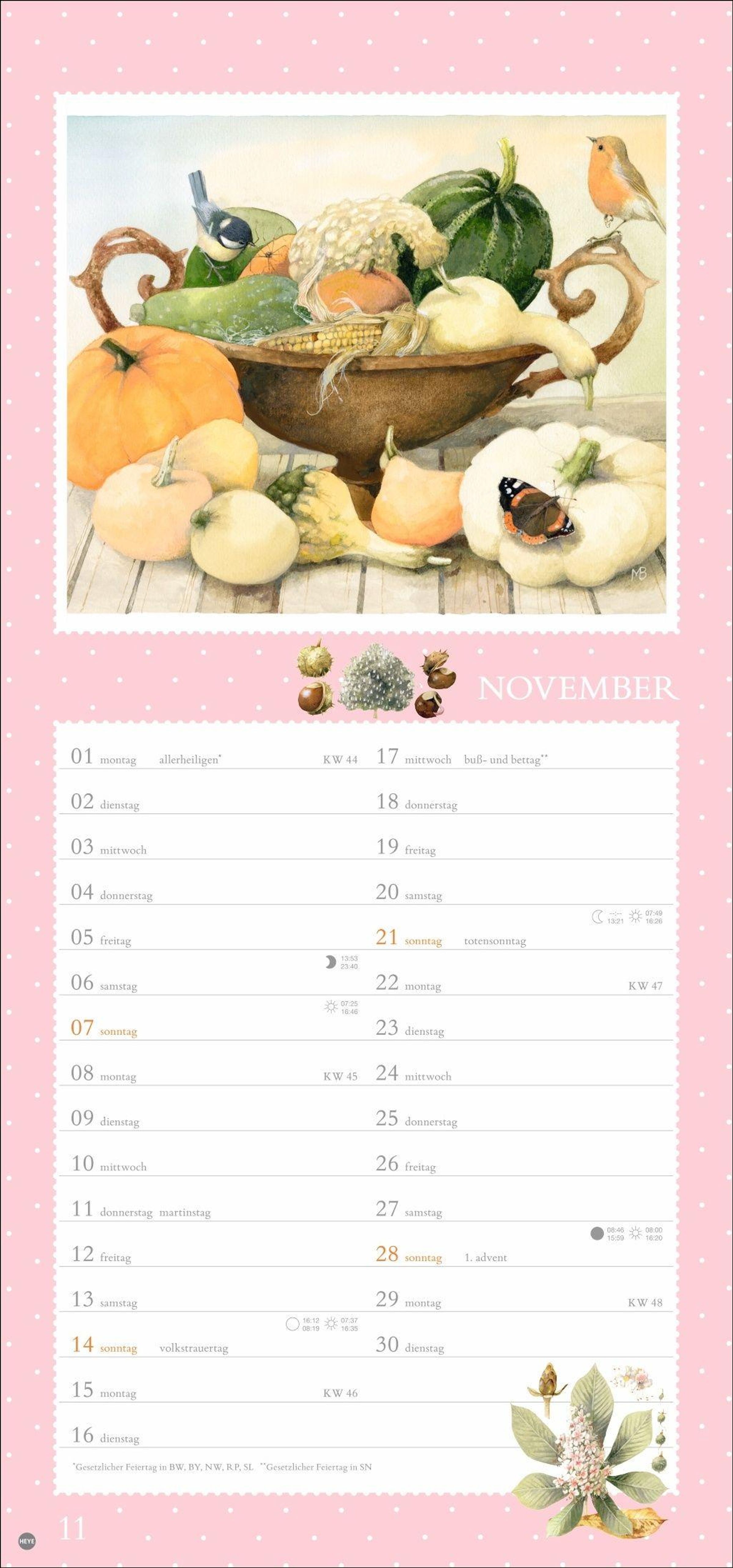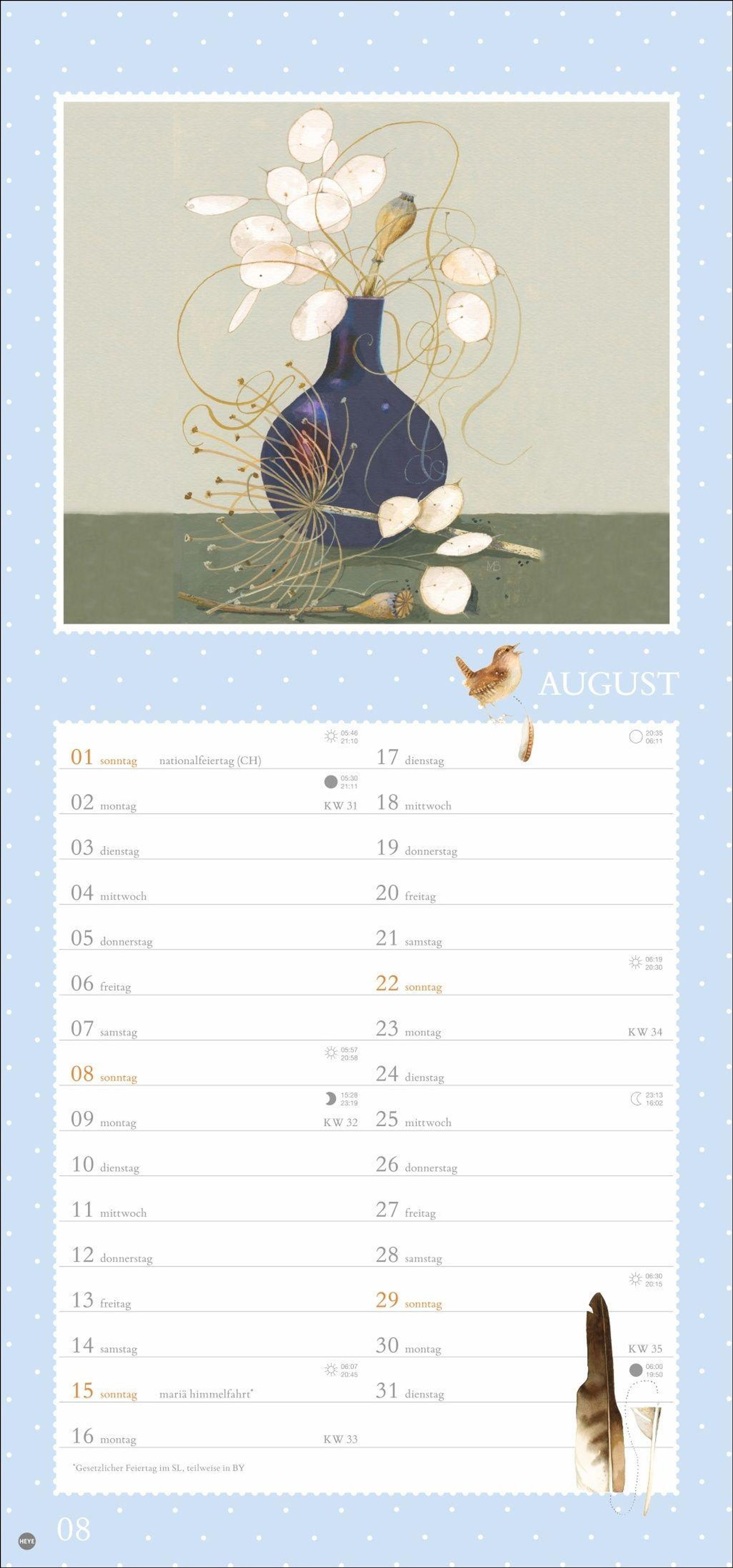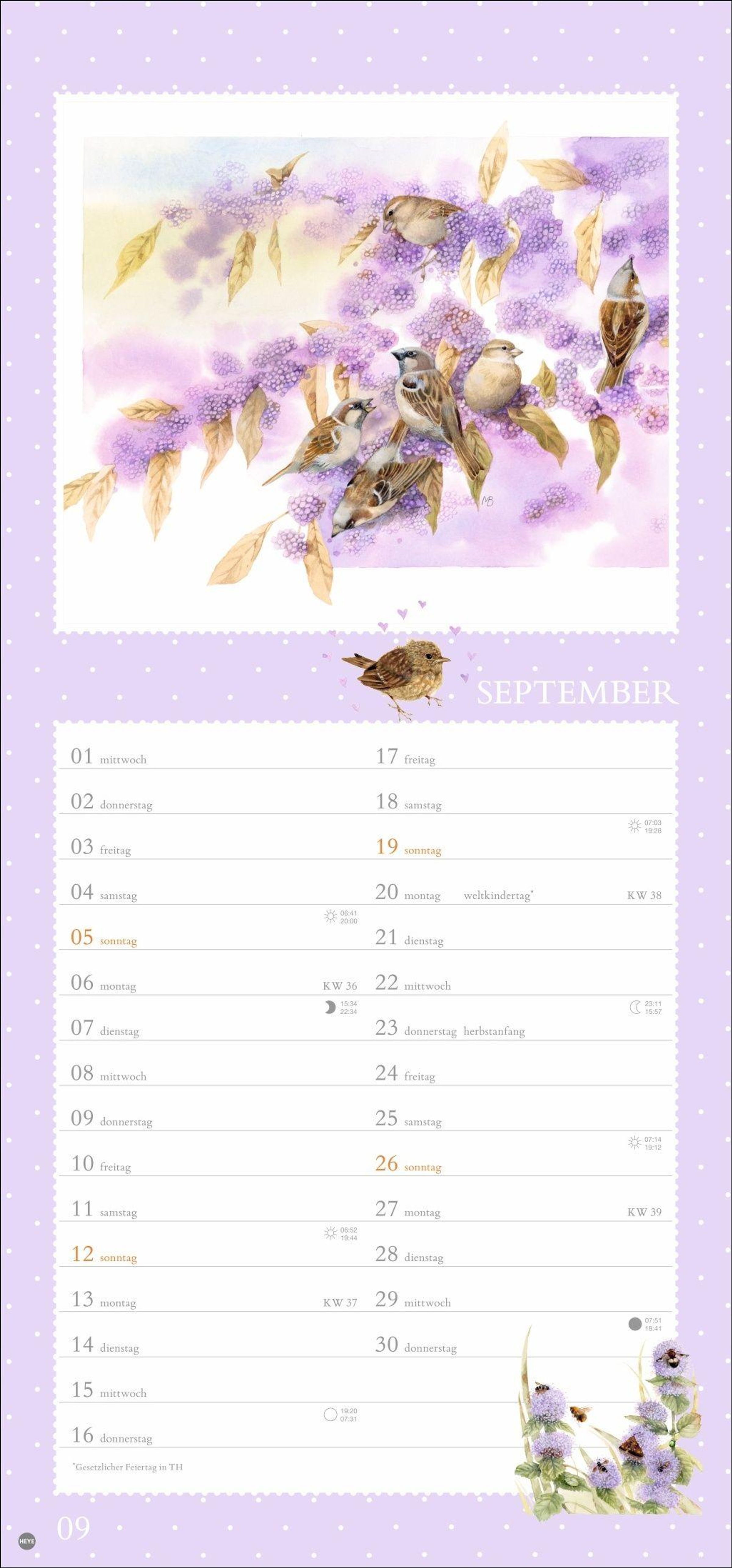 Vögel, Blumen, Schmetterlinge - der Monatskalender mit der Malerei von Marjolein Bastin