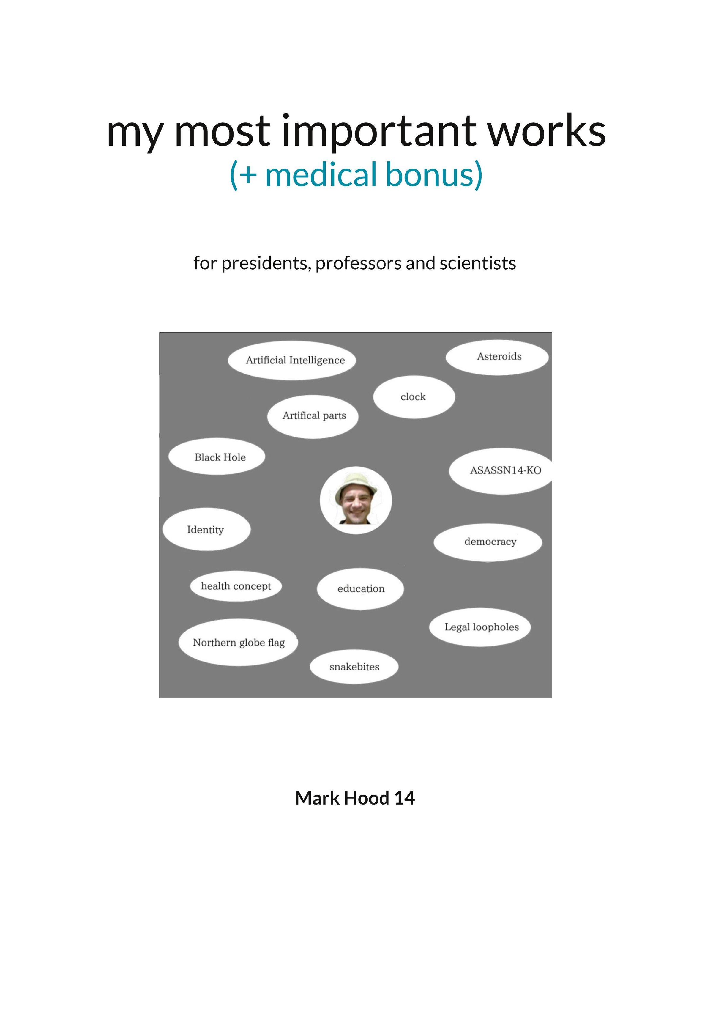 NASA mission Old faithful galaxy - formula, black hole explanation, Sagittarius A-ndromeda joke, asteroids, sun; A. I. artificial parts, Bundestag windvane & screen, forms & colors, wolrd clock, West-East conflict, fight about the Krim, hazards, origin of Life: God's spark, table of goodness, school, worktime, nutrition, sex old town, identity, optimized democracy, legal loopholes, violence + free medical bonus (health overview, open medical findings, vitamins, virus deseases, cmv, bacteria deseases, lung & liver deseases, cancer, sos pad for snake bite, treadmill with sand...