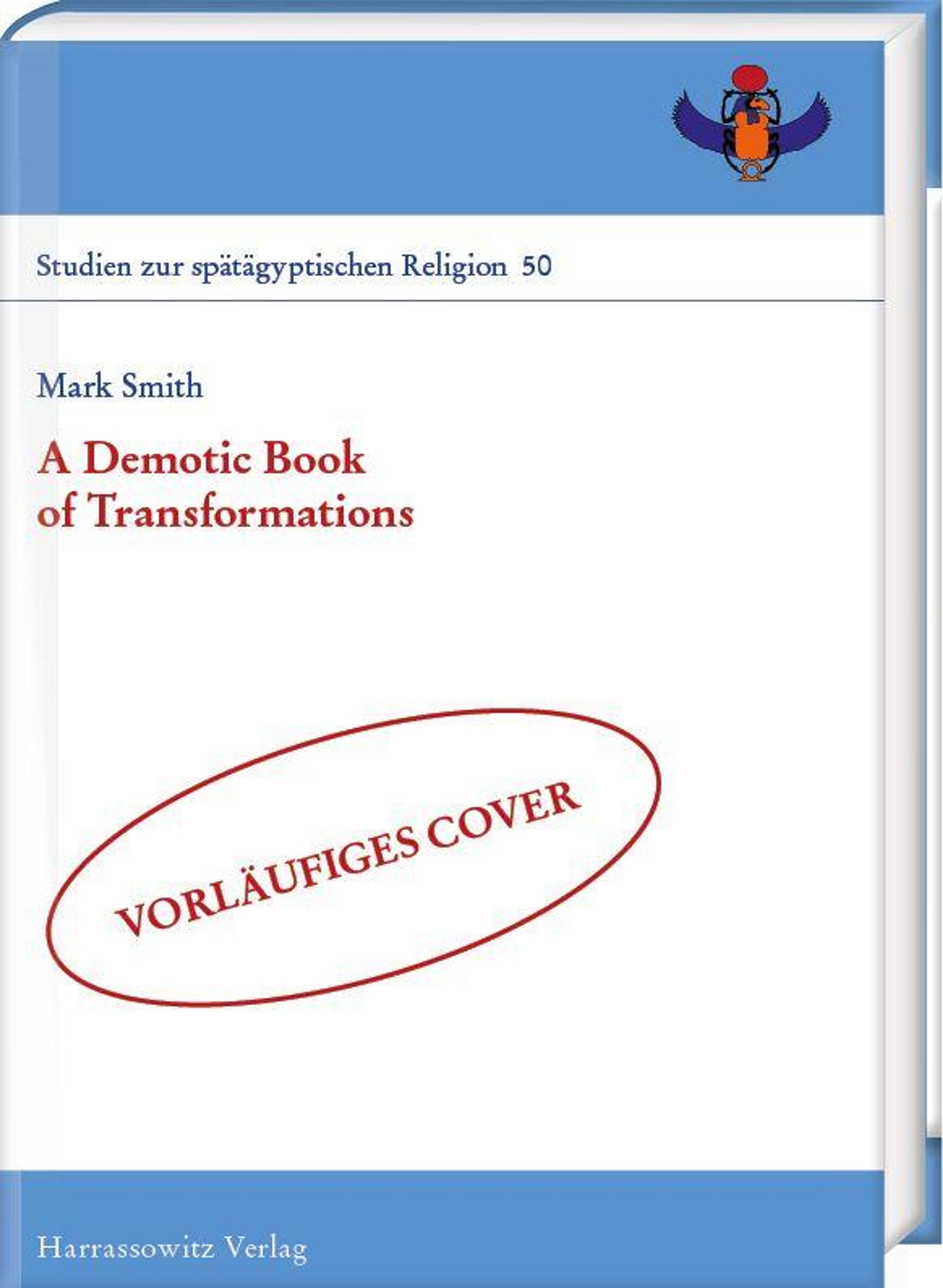„Studien zur spätägyptischen Religion 50“, „Mark Smith“, „A Demotic Book of Transformations“, „VORLÄUFIGES COVER“, Logo oben., Buch
