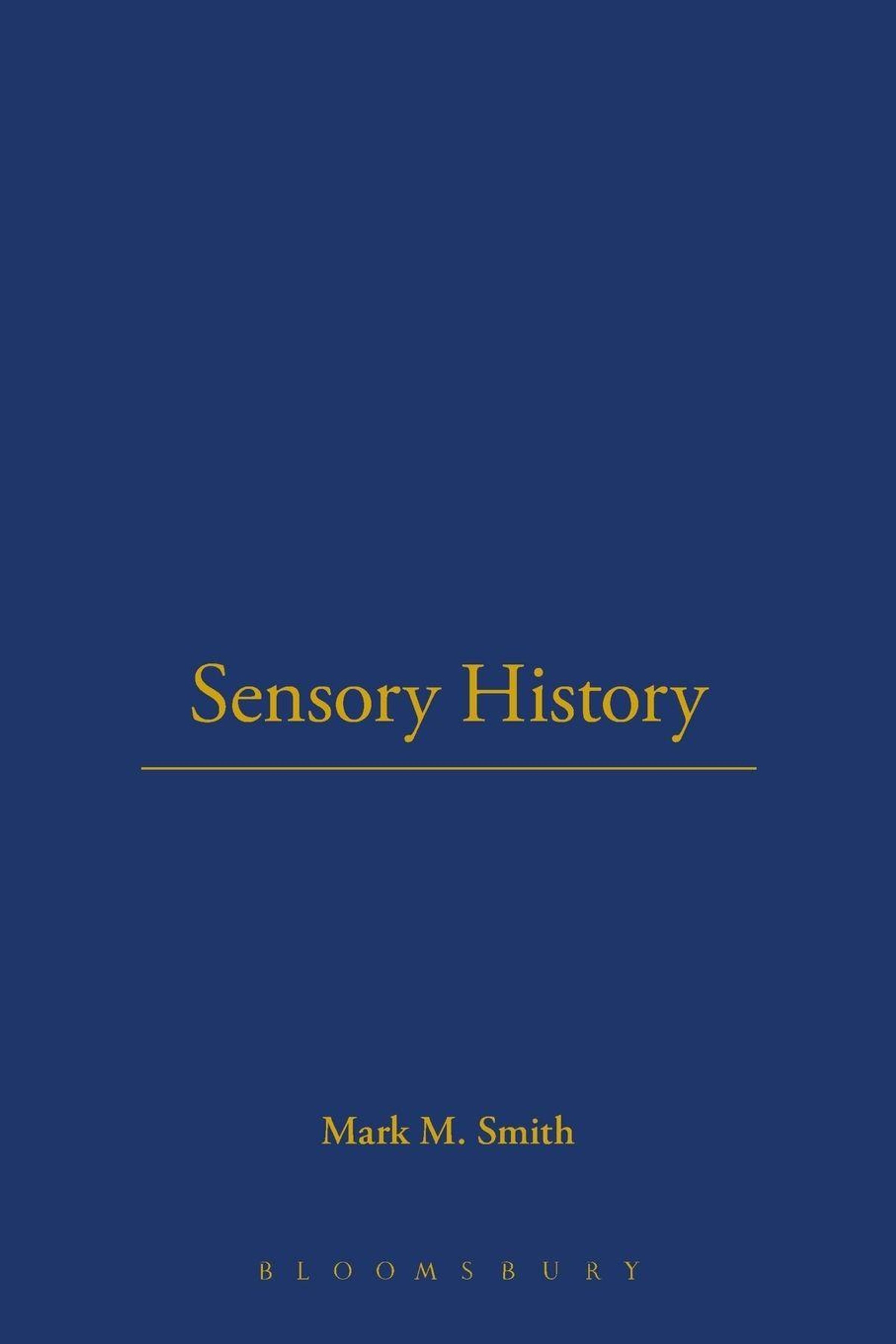 Text: Sensory History. Mark M. Smith. Bloomsbury. Blaues Cover mit gelber Schrift, schlichtes Design., Buch