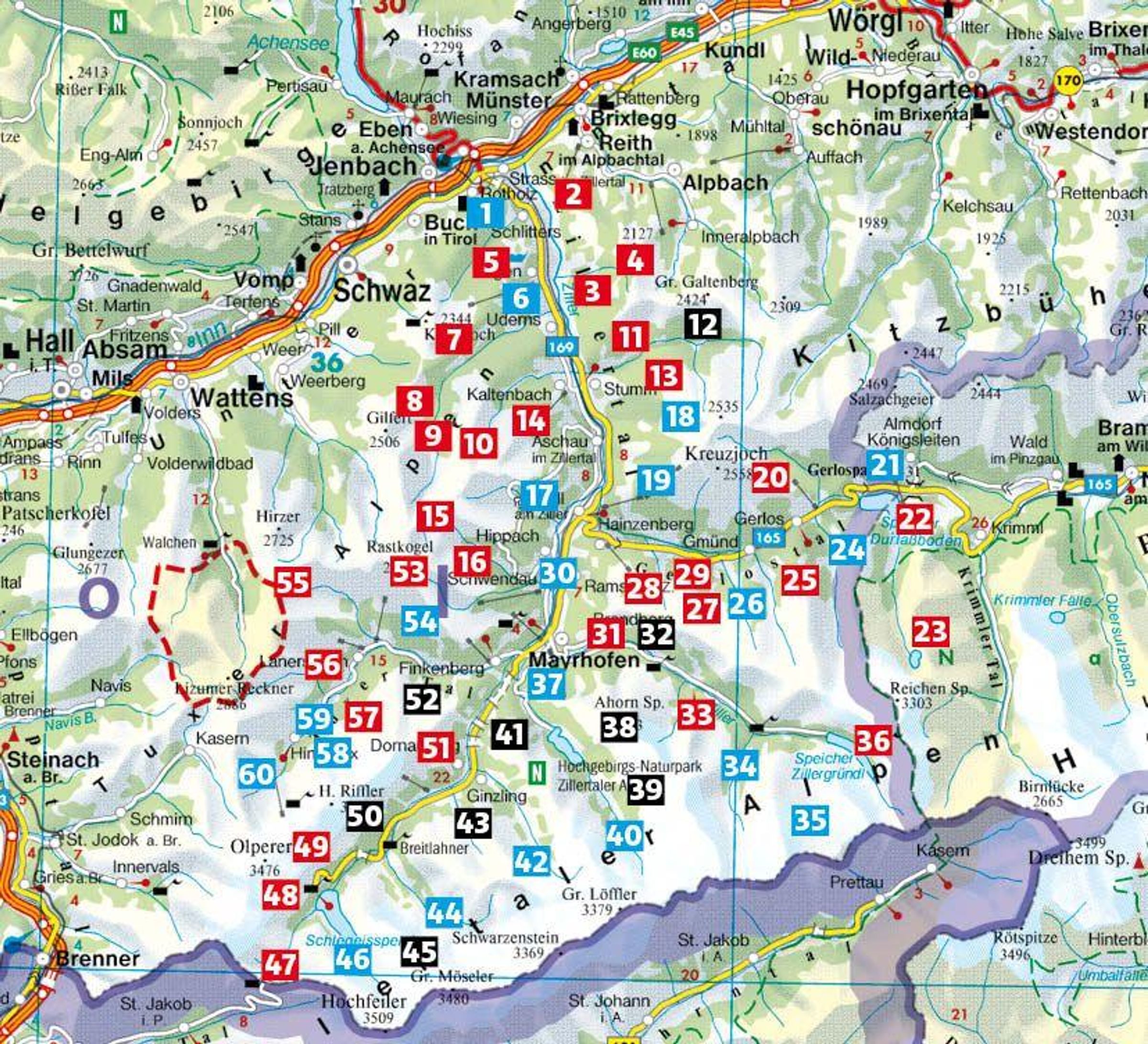 - Große Gebietsabdeckung: 60 ausgewählte Touren erschließen das gesamte Zillertal inklusive der Seitentäler wie Gerlostal und Tuxer Tal.