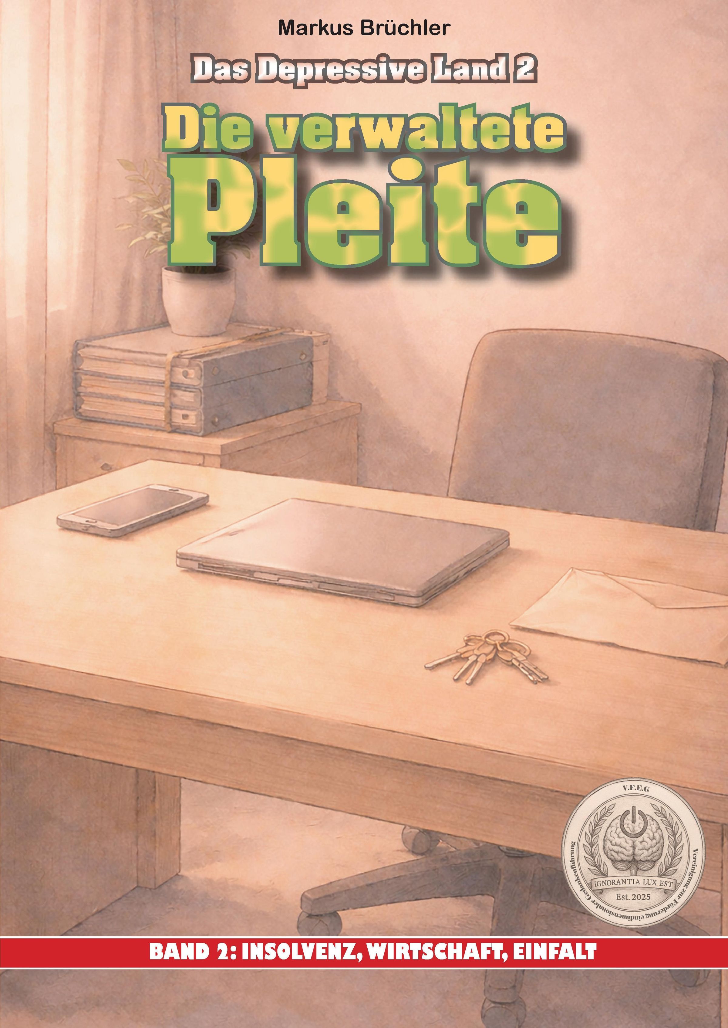 "Die verwaltete Pleite" ist der zweite Band der Reihe "Das depressive Land" aus dem Gesamtprojekt "Die bewusste Verblödung". Als institutsbasierter Warnbericht der V. F.E. G., Abteilung für finanzielle Endstufen, analysiert das Buch die systemischen Mechaniken eines wirtschaftlichen Niedergangs, der nicht mehr als Krise wahrgenommen wird, sondern als verwaltbarer Normalzustand.