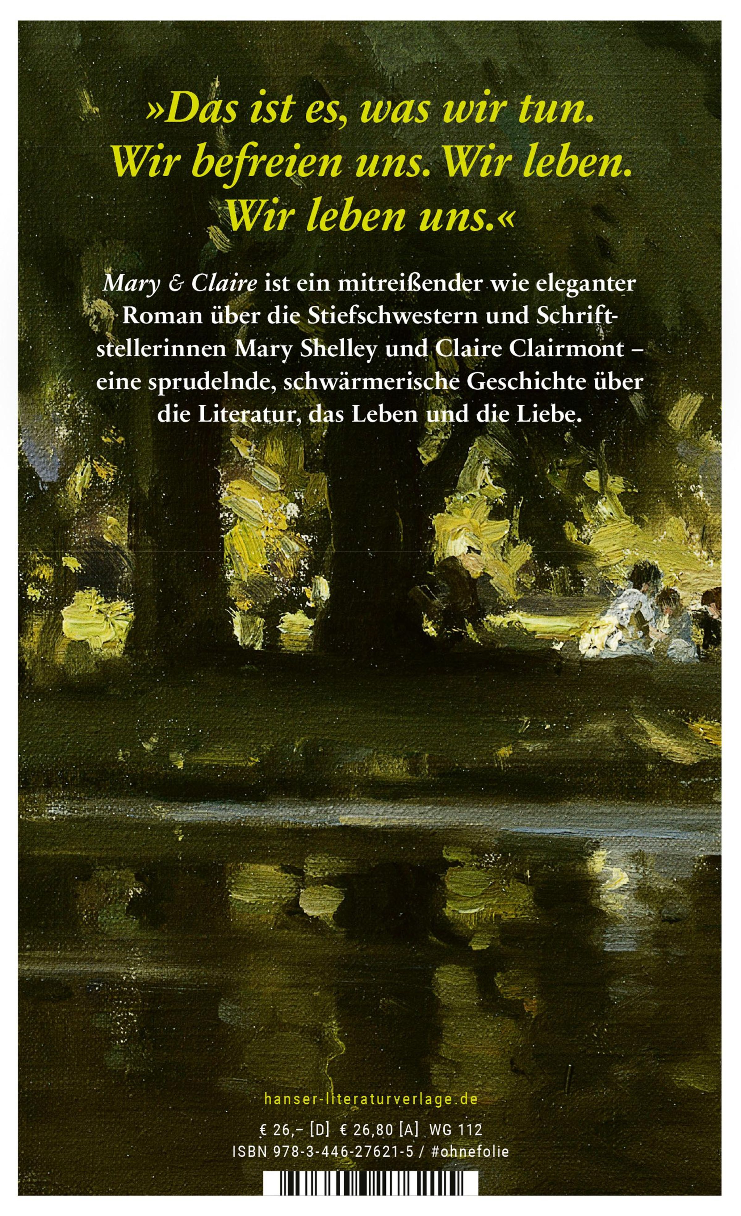 Nach einer wahren Begebenheit: Die Stiefschwestern und Schriftstellerinnen Mary Shelley und Claire Clairmont lieben Percy. Und Percy liebt Mary & Claire. An seiner Seite entfliehen die Frauen der Londoner Enge. Sie wollen atmen, reisen, lesen, wollen verrückt sein, lieben und schreiben. Und sie nehmen den schillerndsten Popstar der Literatur Anfang des 19. Jahrhunderts in ihre Gemeinschaft auf: den jungen Lord Byron. Bei heftigen Gewittern treffen sie sich am Genfer See. Opiumberauscht schlägt Byron um Mitternacht ein Spiel vor: Wer von uns schreibt die schaurigste Geschichte? Für Mary & Claire wird nach dieser Nacht nichts mehr so sein wie zuvor. Ein mitreißender Roman, der Geschichte lebendig macht.