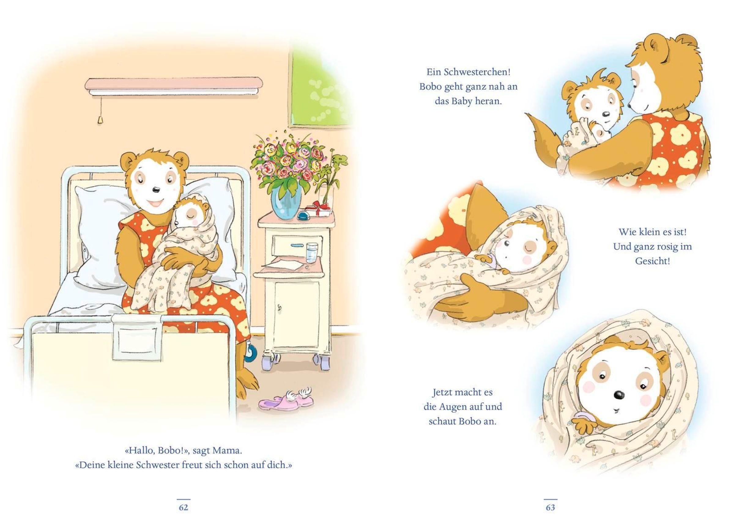 Bald bekommt Bobo ein Geschwisterchen! Bevor es so weit ist, muss Bobo aber noch einiges erledigen: zum Beispiel mit Mama zur Ärztin gehen oder mit Papa das neue Babybett aufbauen - und es gleich mal ausprobieren! Als Mama und Papa ins Krankenhaus fahren, wartet Opa mit Bobo, bis sie das Geschwisterchen endlich besuchen dürfen. Noch schöner aber wird es, als Mama und die kleine Bibi endlich nach Hause kommen.