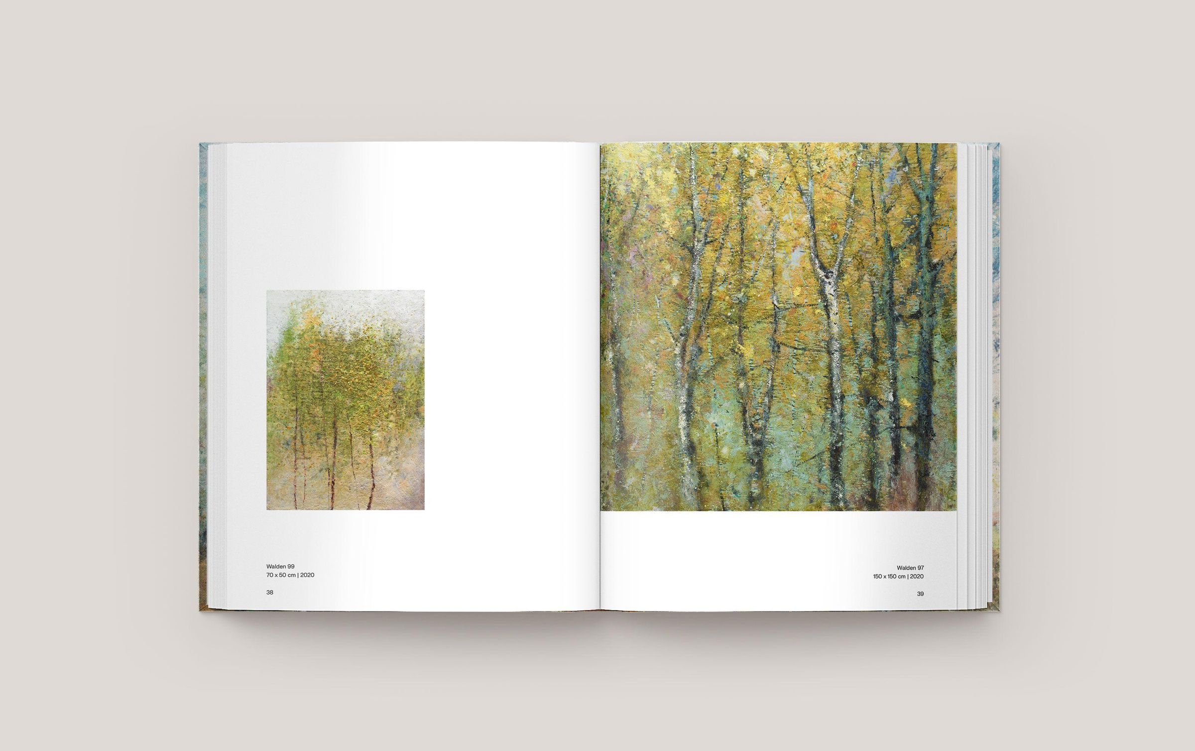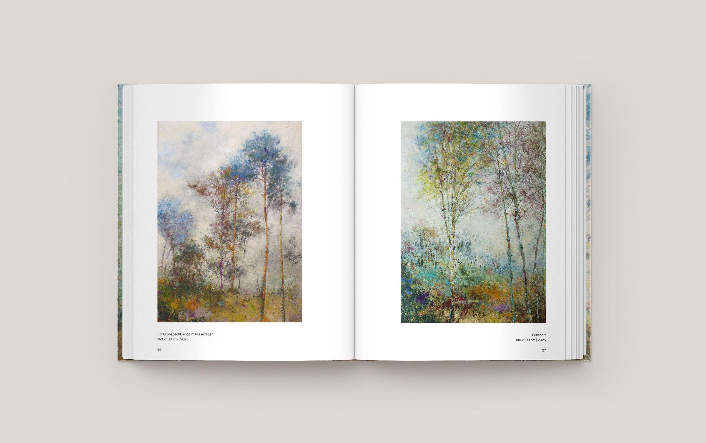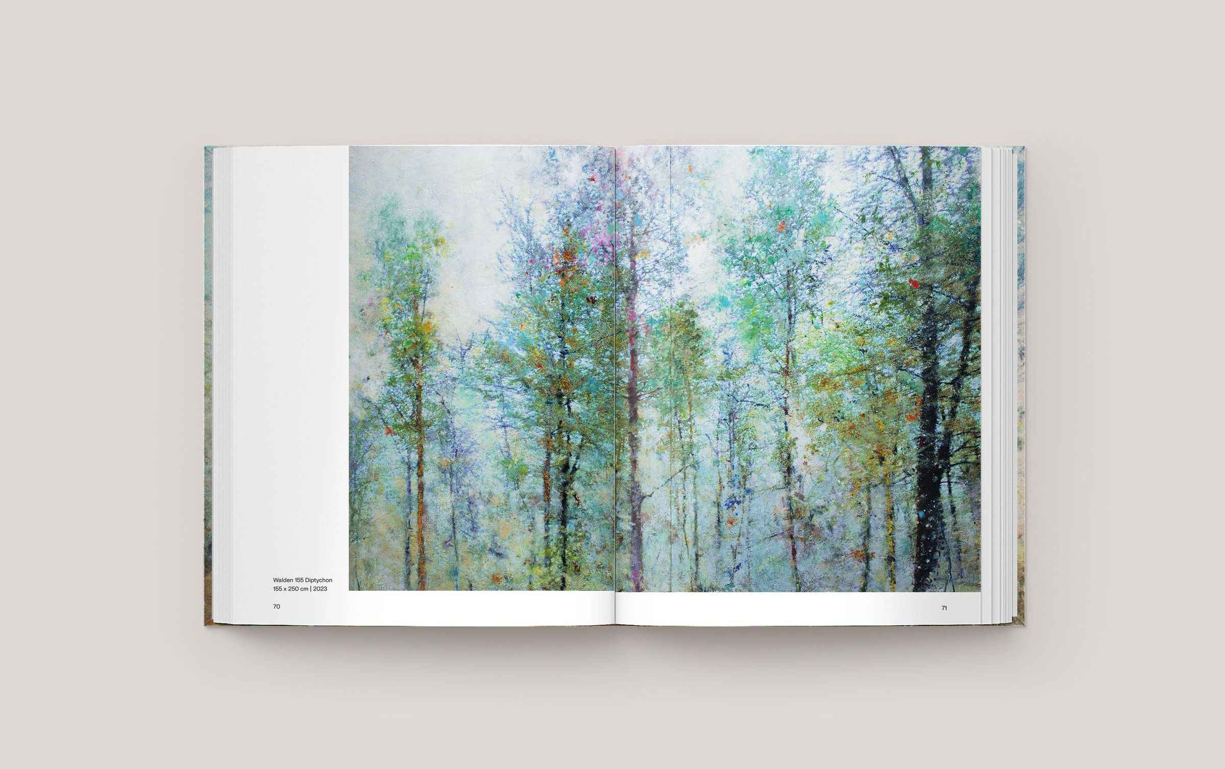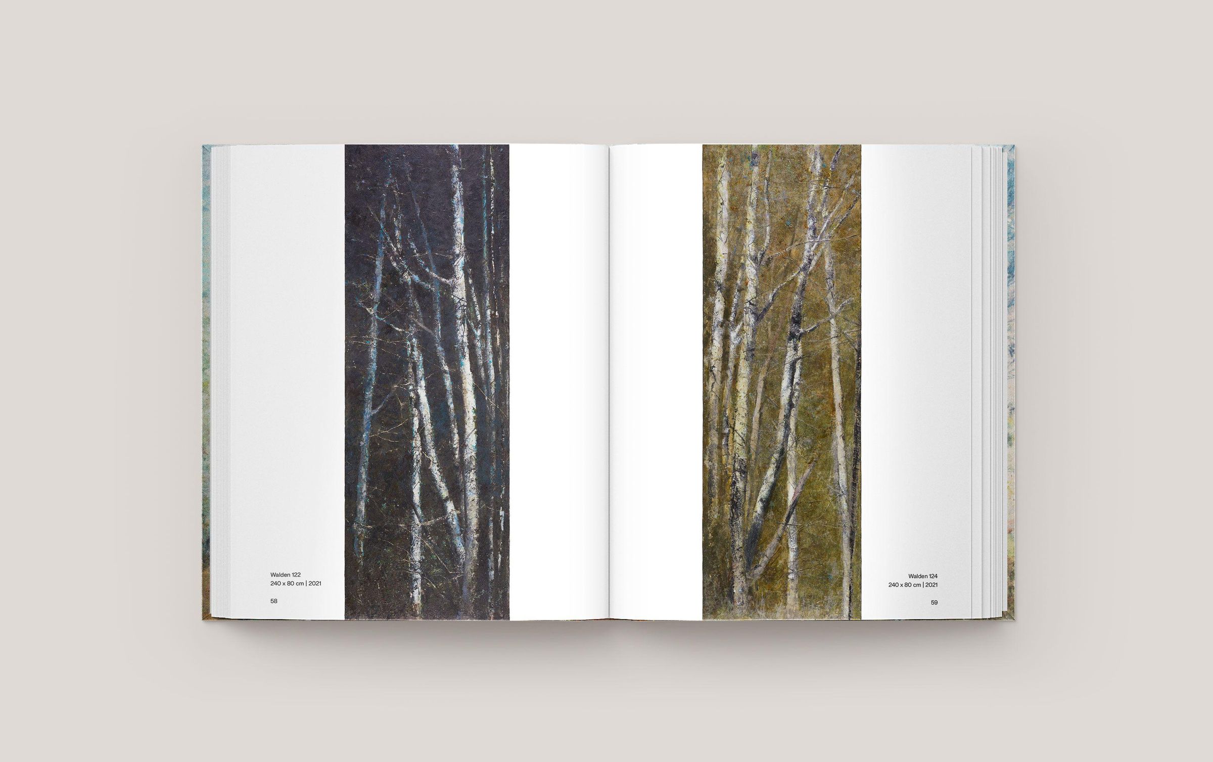 Der Band "Zwischen Bäumen" gibt Einblicke in einen Schaffensschwerpunkt der Künstlerin Marlis Albrecht, die Beschäftigung mit dem Wald. Kennzeichnend für ihre Kunst ist die Arbeit mit dem Naturstoff Bienenwachs, worin es Marlis Albrecht über die Jahrzehnte zur Meisterschaft gebracht hat. Für ihre komplexen, teils großformatigen Bildwerke verwendet sie neben dem erhitzten Wachs, das mit Pigmenten vermischt wird, weitere Materialien wie Tusche, Kreide und Kaltwachstempera. Ihre durchscheinende Wirkung und besondere Tiefe erhalten die Werke durch vielfältige Bearbeitung, Übereinanderlegen und wieder Abtragen einzelner Schichten.
