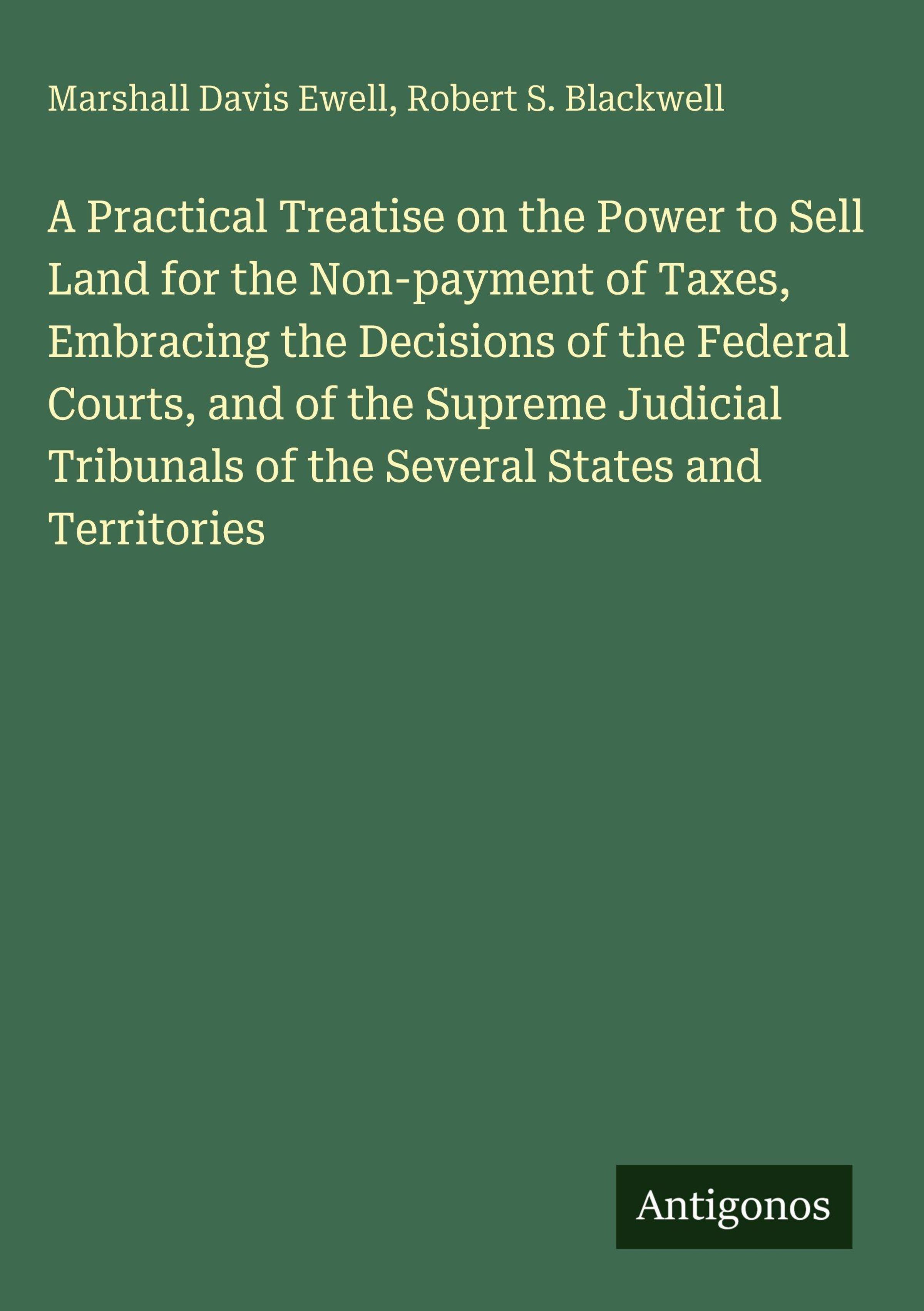 A Practical Treatise on the Power to Sell Land for the Non-payment of Taxes, Embracing the Decisions of the Federal Courts, and of the Supreme Judicial Tribunals of the Several States and Territories