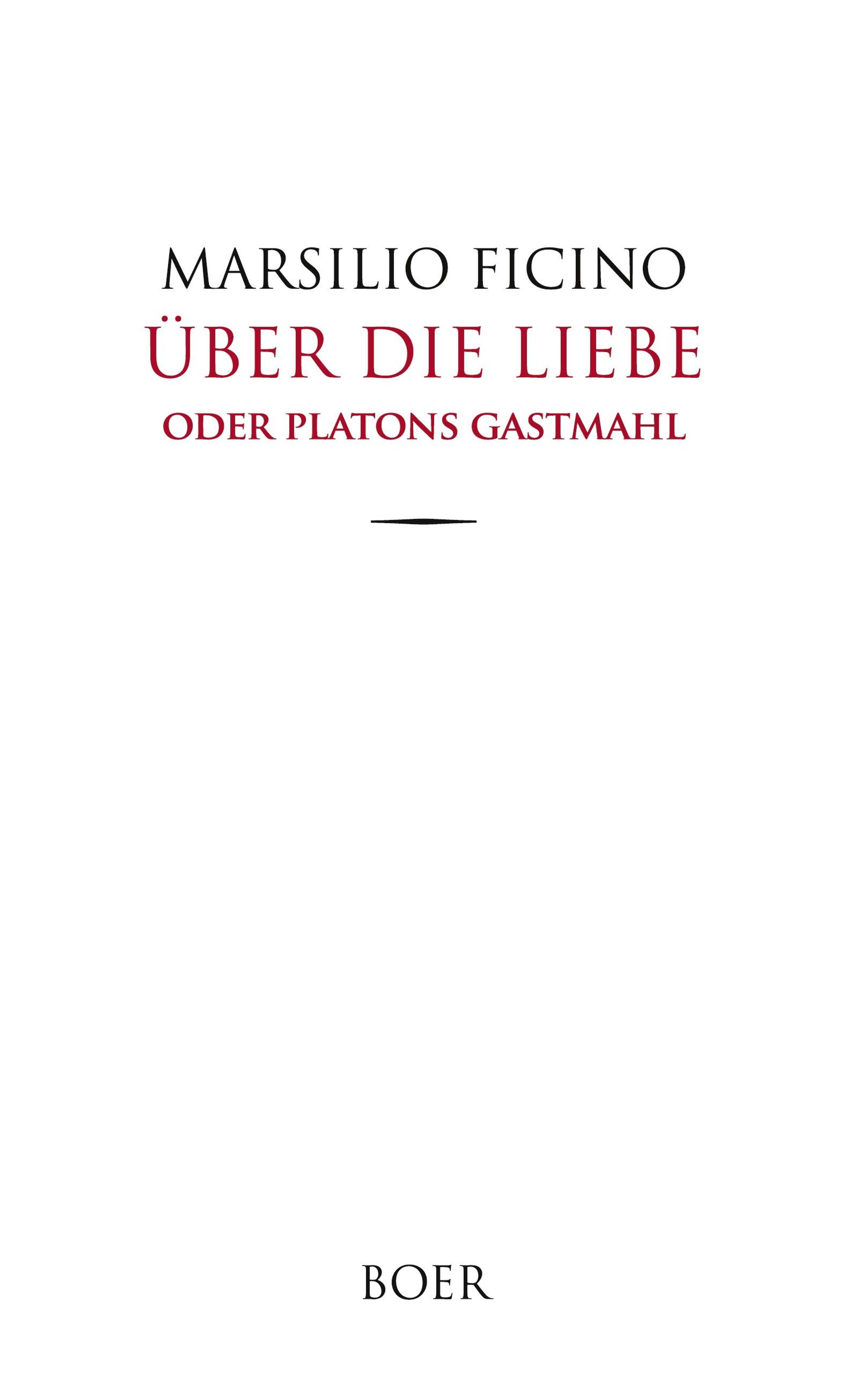 Text: "Marsilio Ficino, Über die Liebe oder Platons Gastmahl." Darunter steht der Name "Boer". Schlichtes, minimalistisches Design., Buch