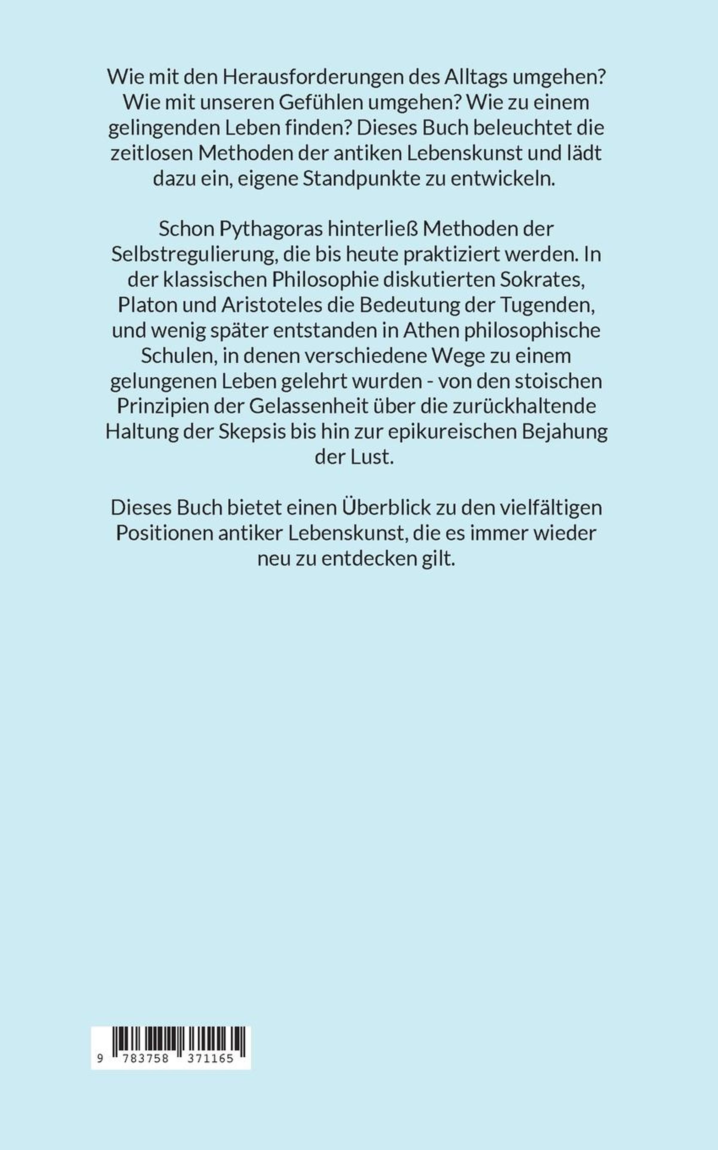 Wie mit den Herausforderungen des Alltags umgehen? Wie mit unseren Gefühlen umgehen? Wie zu einem gelingenden Leben finden? Dieses Buch beleuchtet die zeitlosen Methoden der antiken Lebenskunst und lädt dazu ein, eigene Standpunkte zu entwickeln. Schon Pythagoras hinterließ Methoden der Selbstregulierung, die bis heute praktiziert werden. In der klassischen Philosophie diskutierten Sokrates, Platon und Aristoteles die Bedeutung der Tugenden, und wenig später entstanden in Athen philosophische Schulen, in denen verschiedene Wege zu einem gelungenen Leben gelehrt wurden - von den stoischen Prinzipien der Gelassenheit über die zurückhaltende Haltung der Skepsis bis hin zur epikureischen Bejahung der Lust. Dieses Buch bietet einen Überblick zu den vielfältigen Positionen antiker Lebenskunst, die es immer wieder neu zu entdecken gilt.