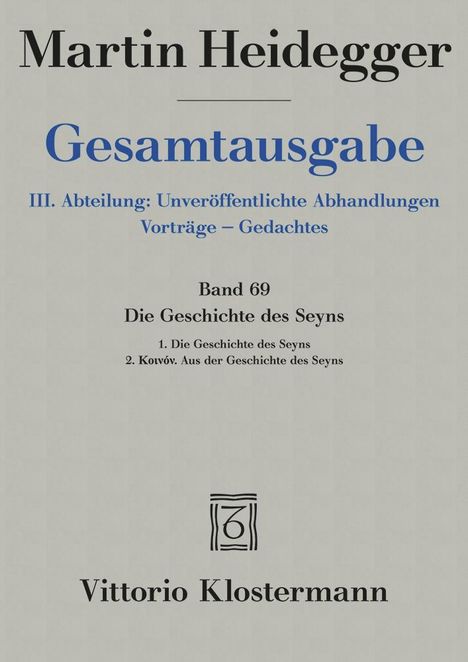 Die Geschichte des Seyns. 1. Die Geschichte des Seyns (1938/40) 2. Koinón. Aus der Geschichte des Seyns (1939)