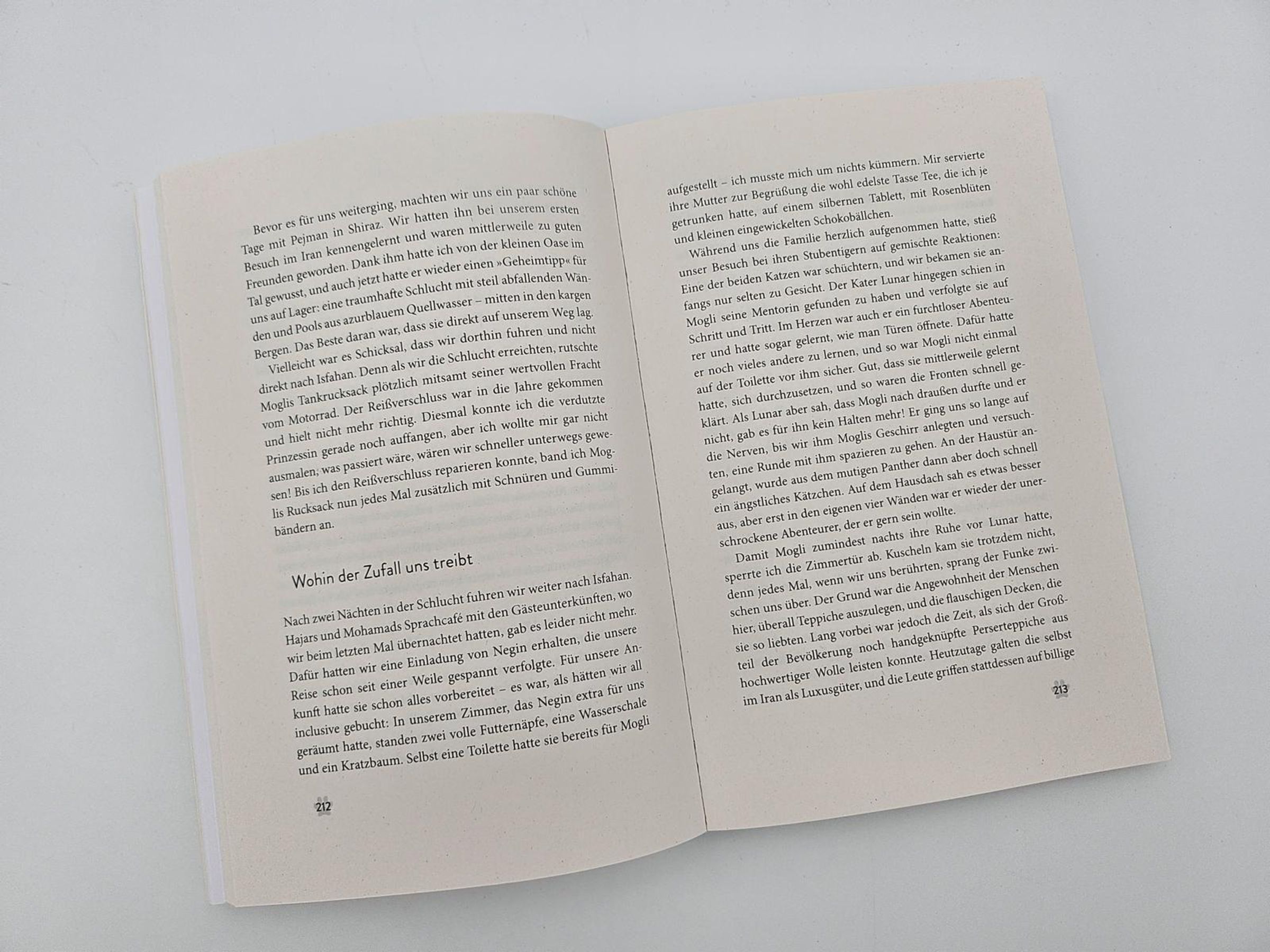 Zum Glück ist Martins Fürsorge so groß wie seine Unternehmungslust. Denn extreme Temperaturen können Mogli ebenso gefährlich werden wie streunende Hunde, Leoparden oder Elefanten. Anschaulich erzählt er von Gegenden, in denen seine Begleiterin für ungläubiges Staunen sorgte, und davon, wie dank ihr manche Menschen zu Tierliebhabern wurden. Von Regionen, in denen Katzen nur auf den Straßen leben und im Haus unerwünscht sind. Davon, wie wichtig bei der Quartiersuche Rückzugsraum für Mogli ist, dass er sie mehr als einmal fast verloren hätte - und wie er ihr zuliebe auf manch holprige Offroad -Strecke verzichtete. Von brenzligen Grenzübertritten und Wetterumschwüngen auf hohen Gebirgsstraßen. Von Begegnungen mit aufstrebenden Mollywood-Stars und begeisterten Motocross-Fans, von Städten wie Istanbul, wo Katzenliebe großgeschrieben wird. Und von der Aufgeschlossenheit und Großzügigkeit unserer Mitmenschen, die die beiden ohne Argwohn und mit offenen Armen bei sich aufnahmen.