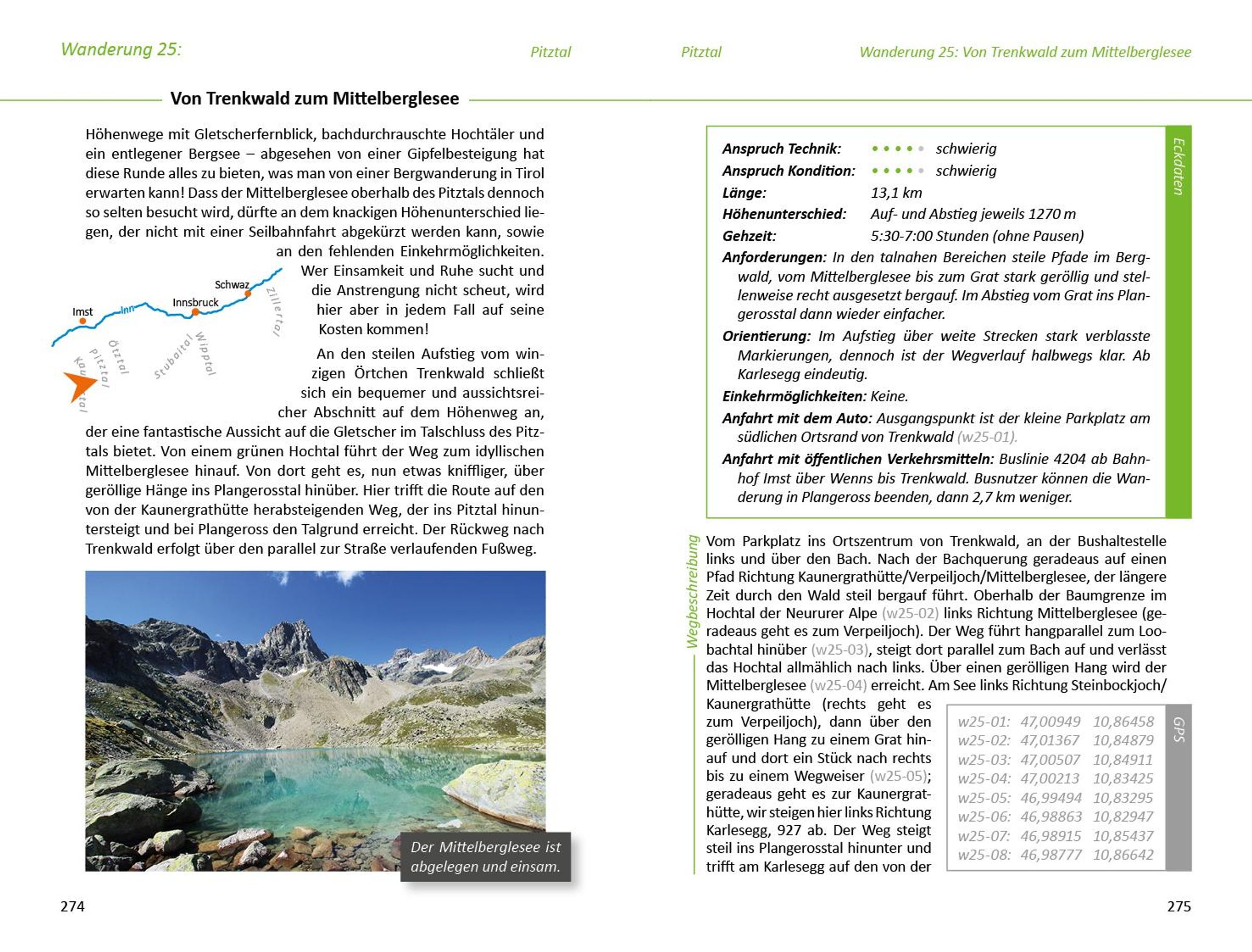 Dieser Reiseführer stellt alle interessanten Ortschaften und Ausflugsziele im Zillertal, Stubaital, Ötztal, Pitztal und Kaunertal mit vielen Fotos und Hintergrundinformationen vor, dazu die Stadt Innsbruck sowie alle kulturellen Sehenswürdigkeiten des Inntals. Die 32 schönsten und erlebnisreichsten Wandertouren der Region werden ausführlich beschrieben. Ein differenziertes Bewertungssystem gibt Auskunft über die Anforderungen, topografische Detailkarten und GPS-Daten bringen Sie auf den richtigen Weg. Mit den herausnehmbaren Tourenblättern haben Sie alle wichtigen Informationen unterwegs immer griffbereit!