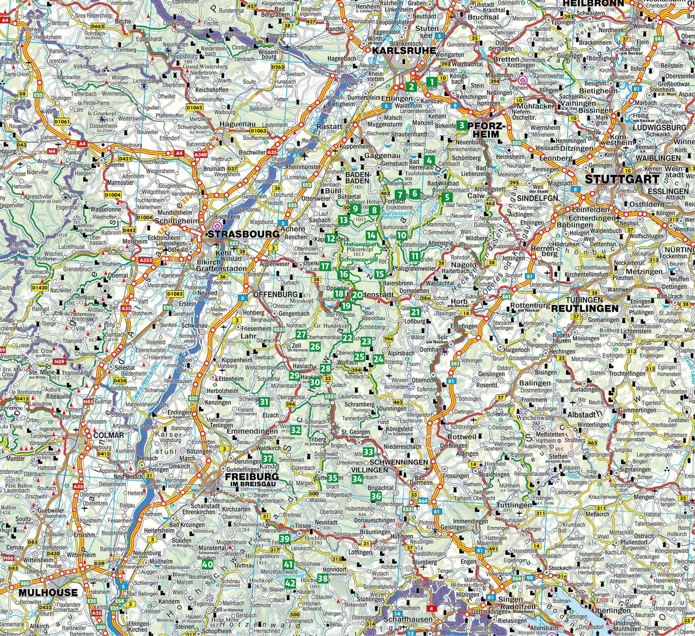 - 42 Höhenprofile, 42 Wanderkärtchen im Maßstab 1:50.000, 2 Übersichtskarten im Maßstab 1:2.000.000 und 1:800.000, Tourenmatrix