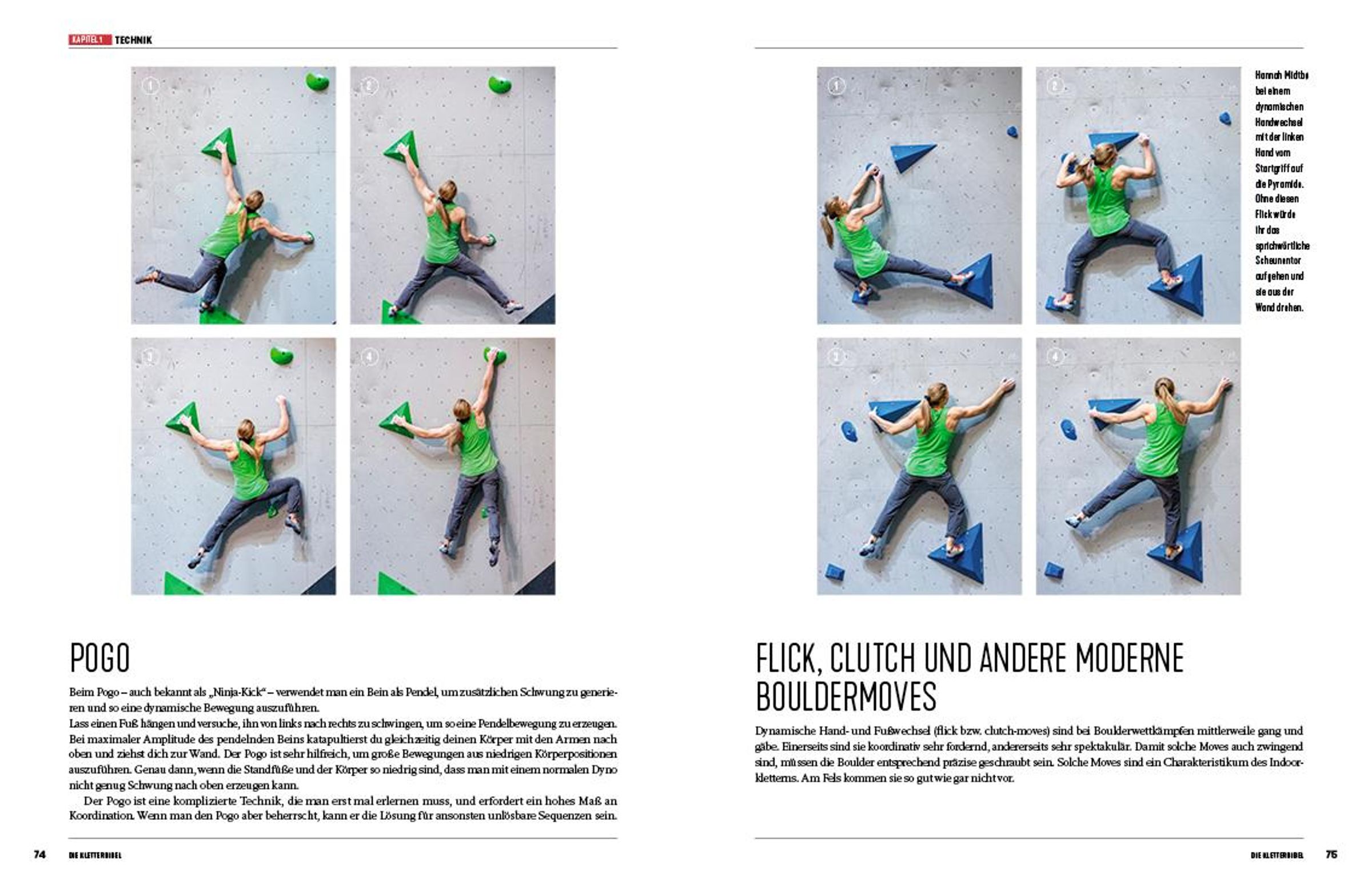 - Detaillierte Fotos von Griffpositionen, Fußtechniken und Klettersituationen